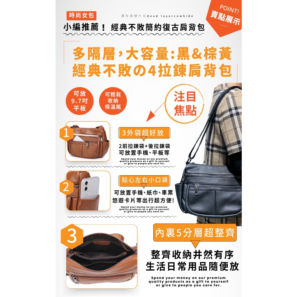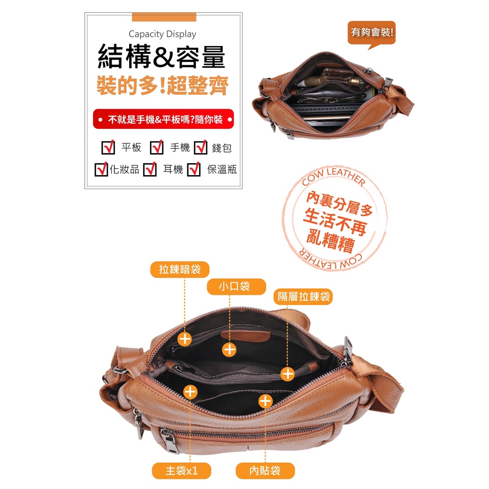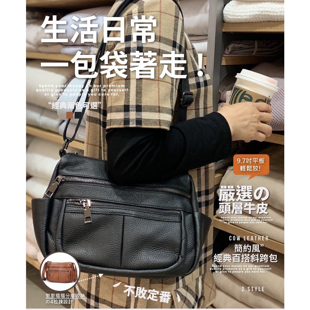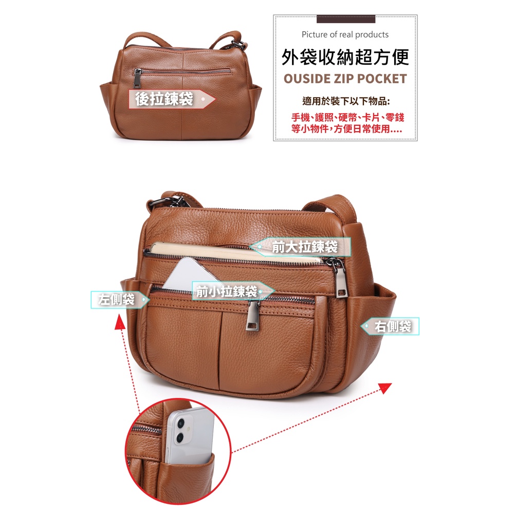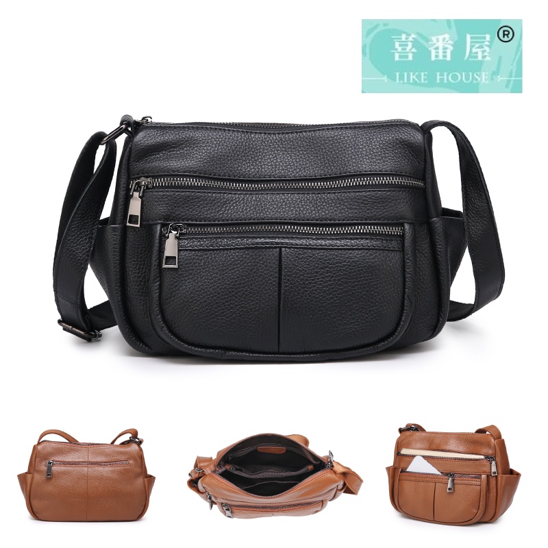 【喜番屋】頭層牛皮女士肩背包【LB804】真皮 多隔層 單肩包 女包
