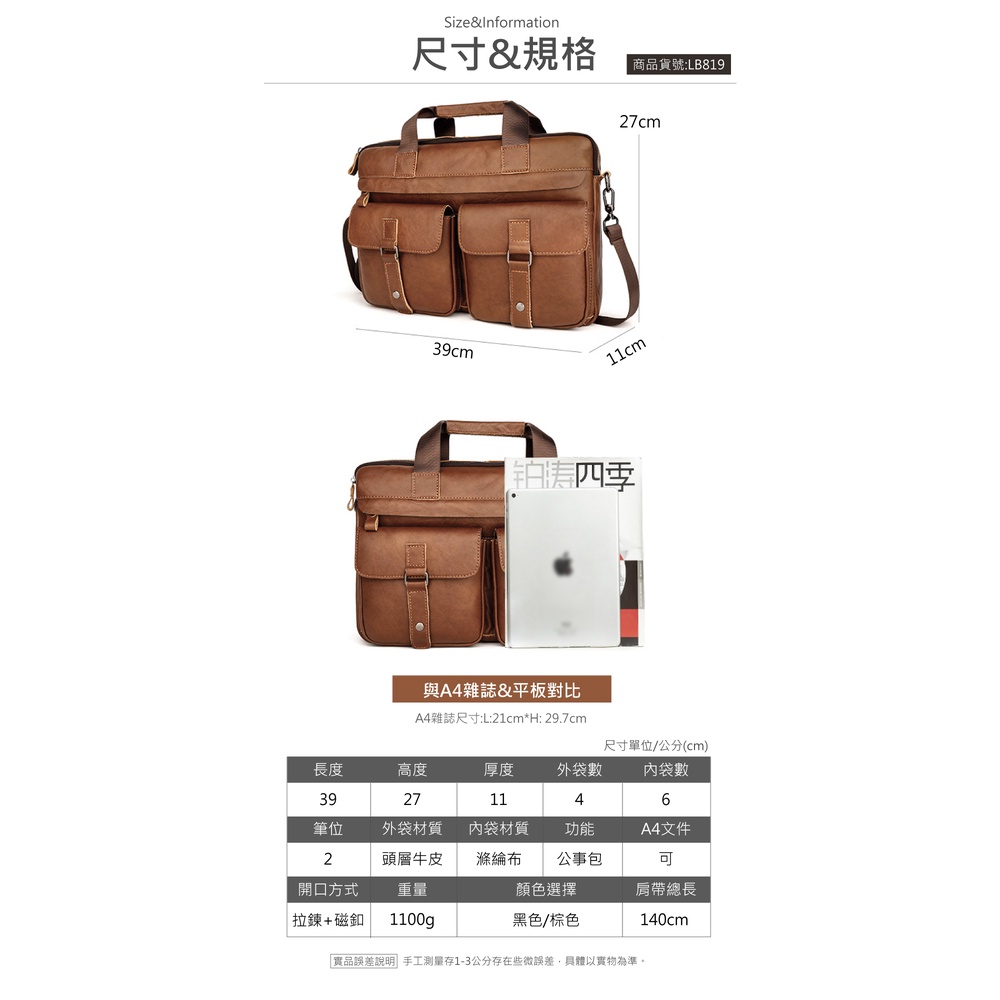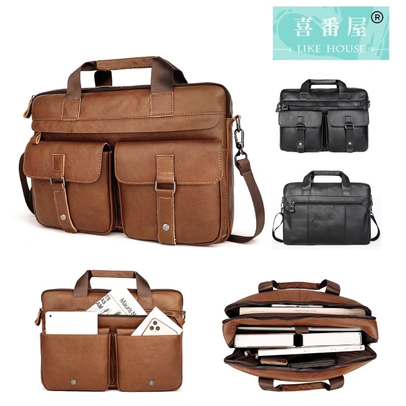 【喜番屋】真皮頭層牛皮多口袋男士公事包電腦包手提包男包【LB819】