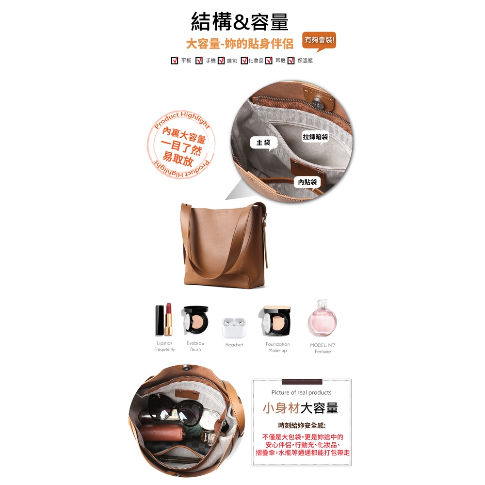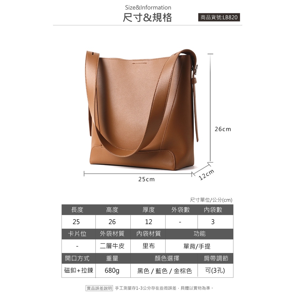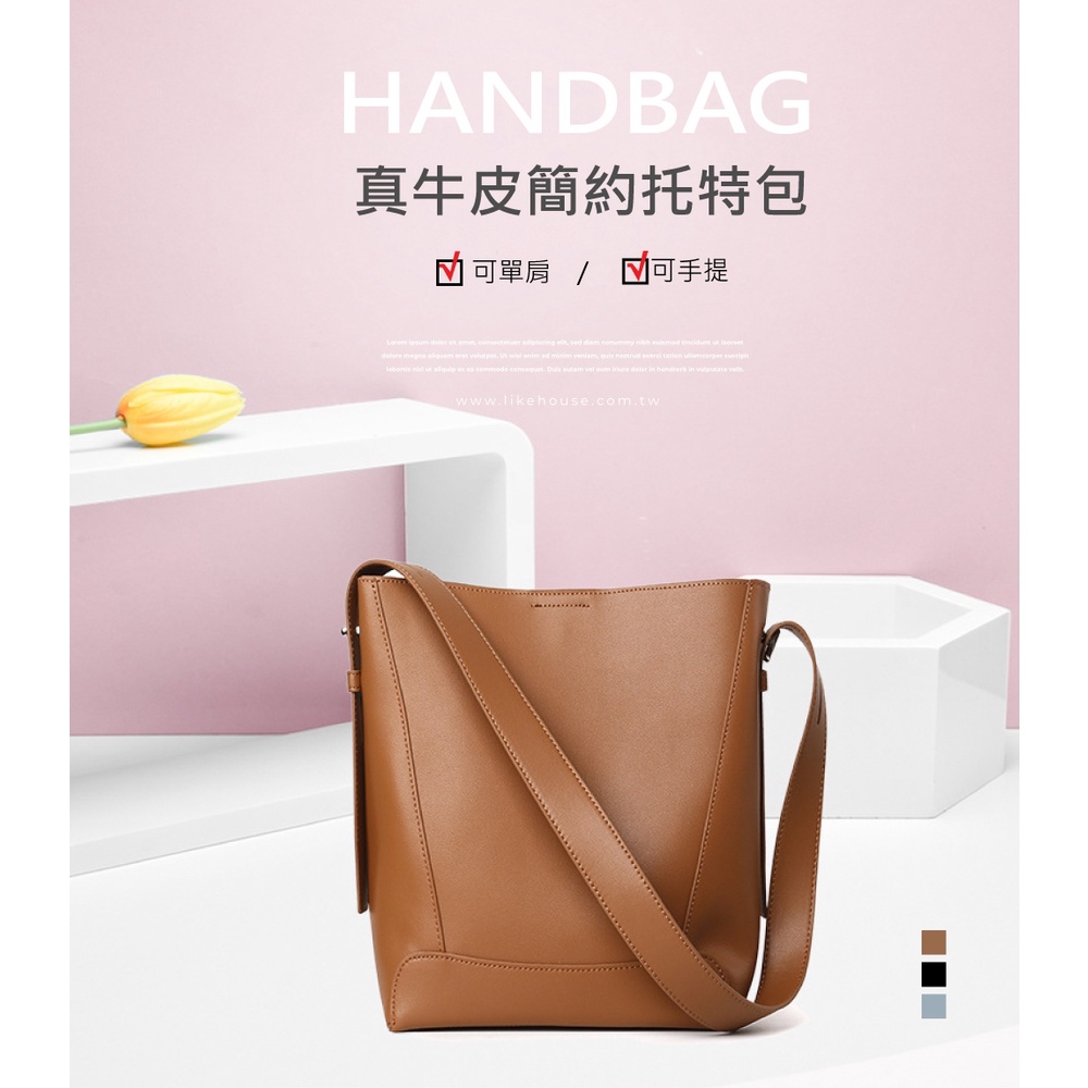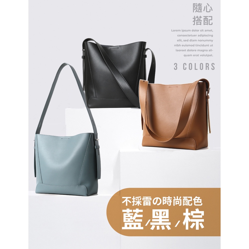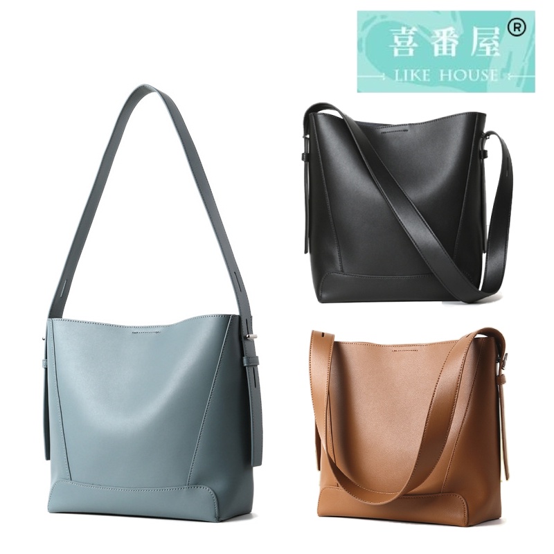 【喜番屋】真皮牛皮簡約女士肩背包水桶包單肩包女包【LB820】