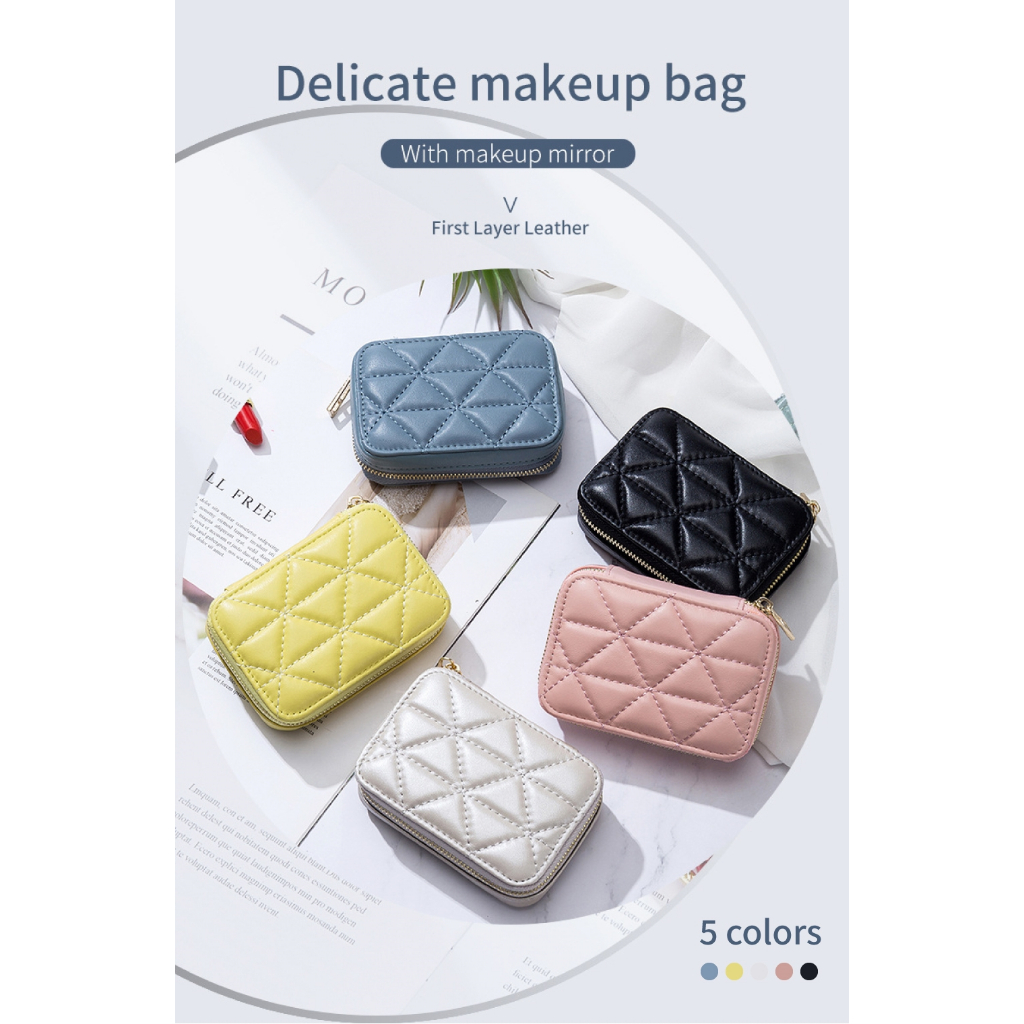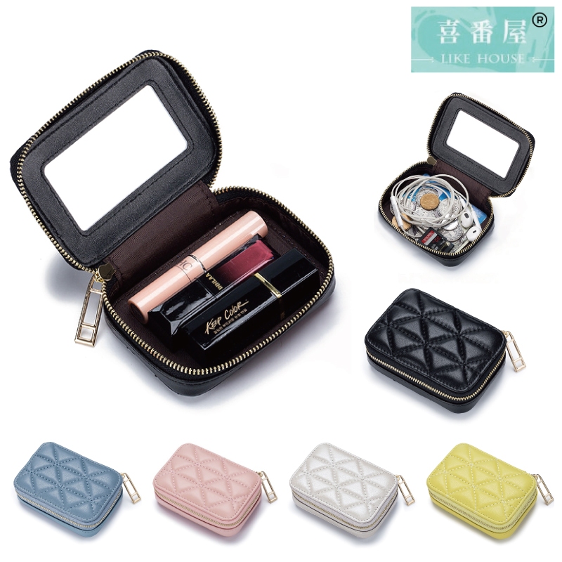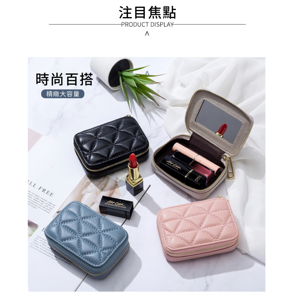 【喜番屋】真皮菱格紋牛皮化妝包口紅包女包【LW55】