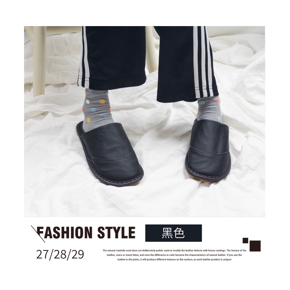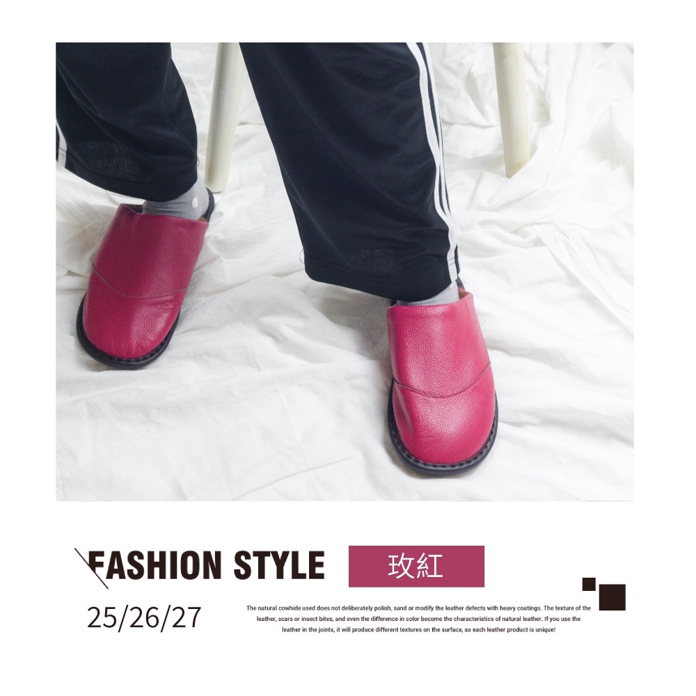 【喜番屋】真皮頭層牛皮牛筋底室內拖鞋【LS02】