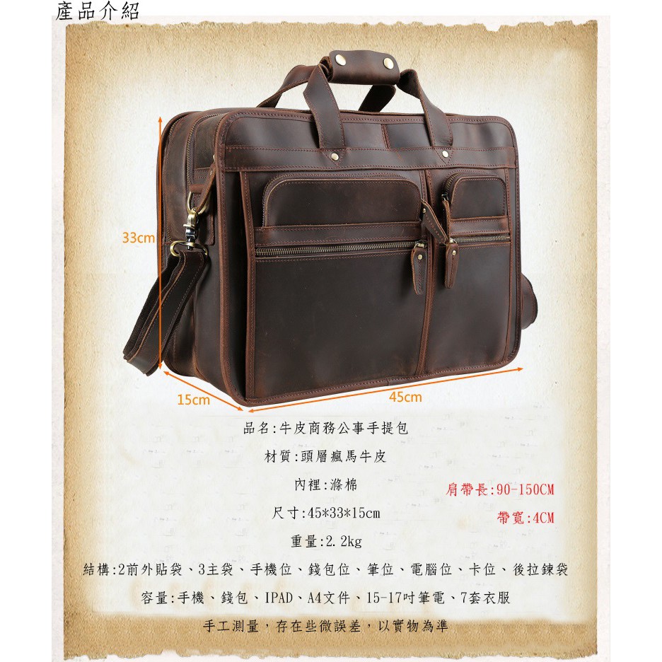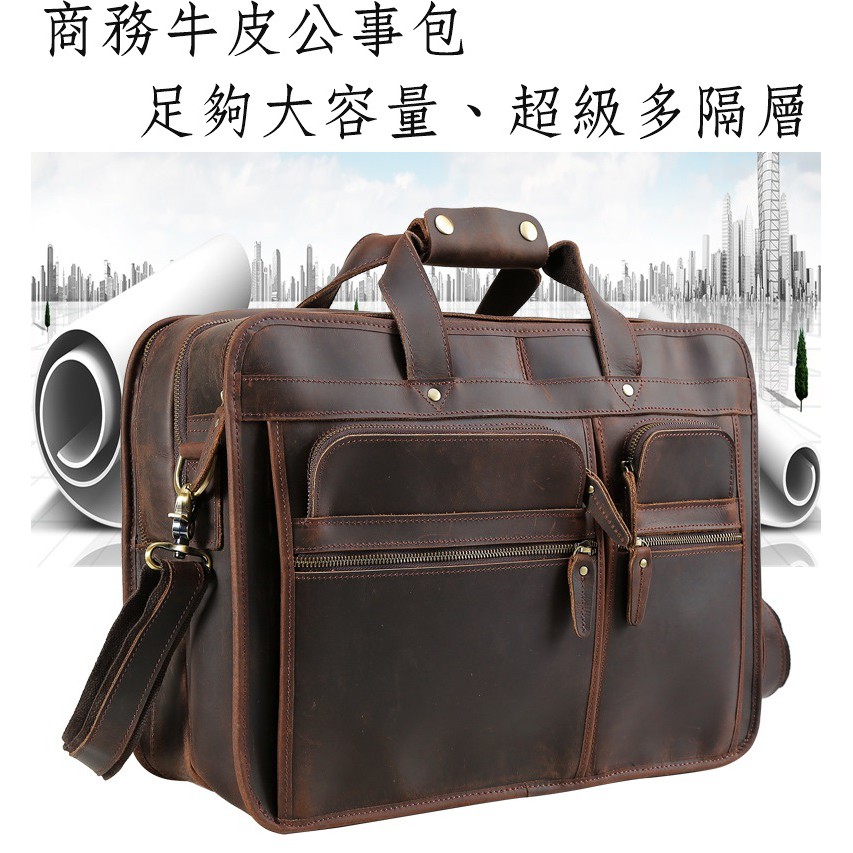【喜番屋】頭層瘋馬牛皮男士手提包【LB335】真皮 商務包 電腦包 公事包 男包