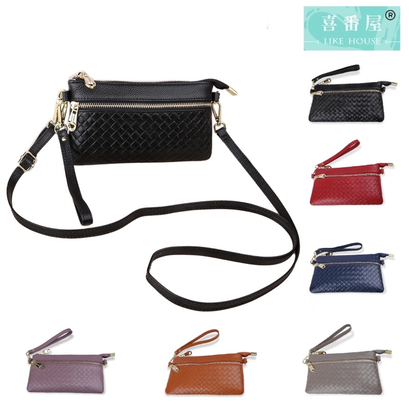 【喜番屋】頭層牛皮編織紋女士肩背小包【LH850】真皮 手拿包 女包 女夾 斜背包 手機包