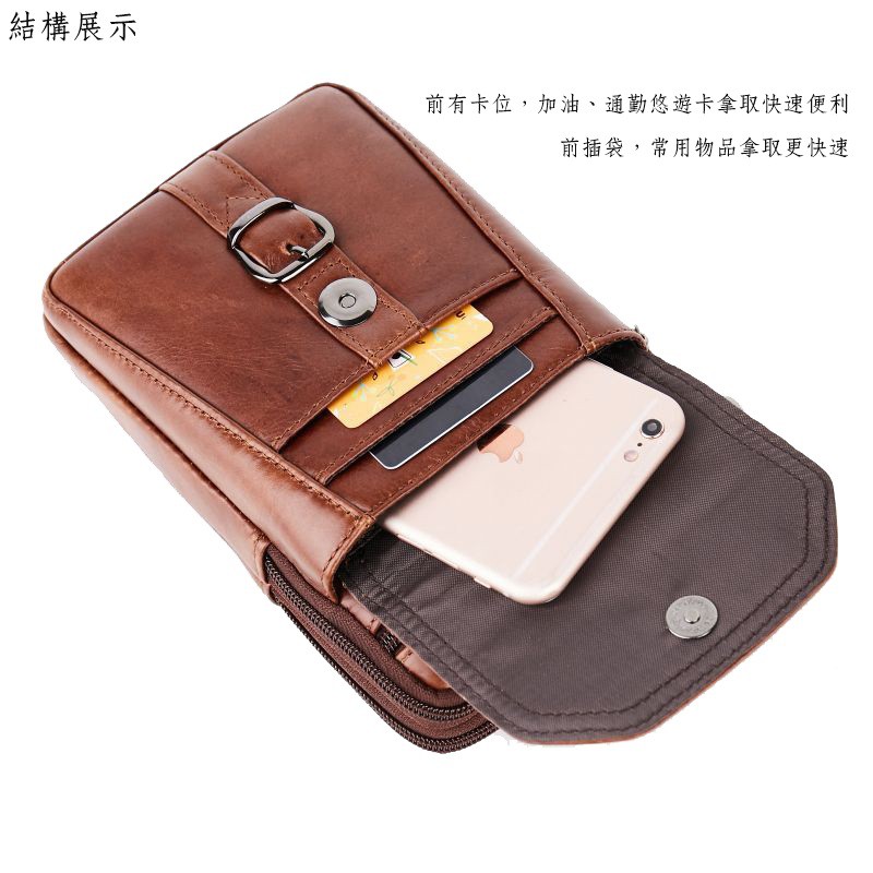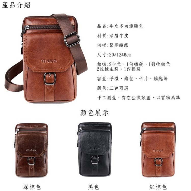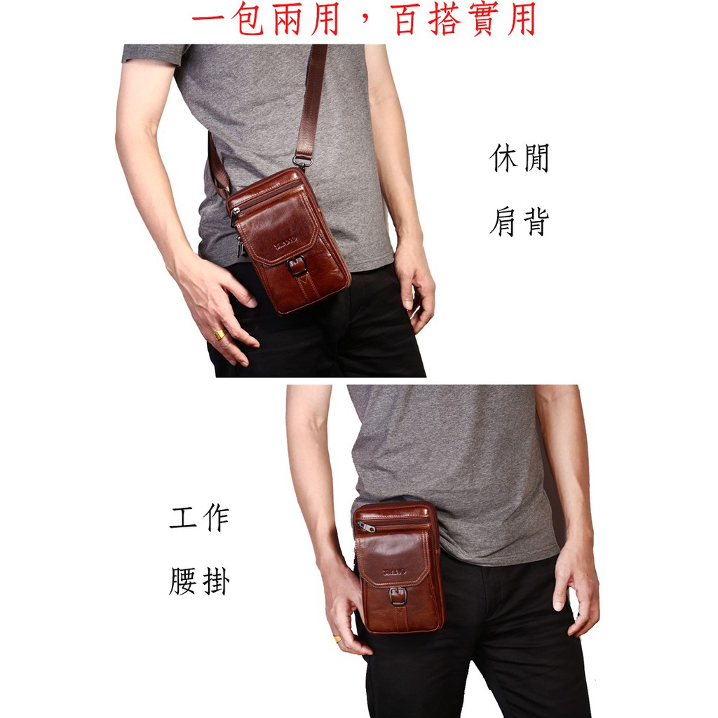 【喜番屋】頭層牛皮3WAY男士腰包【LB352】真皮 手機包 可肩背 男包