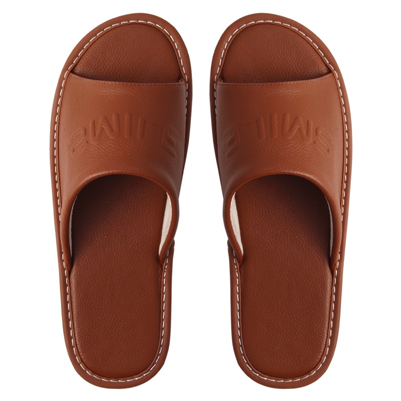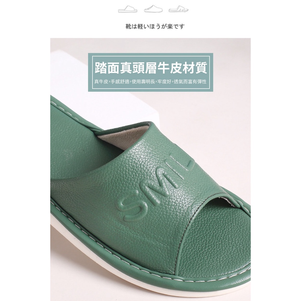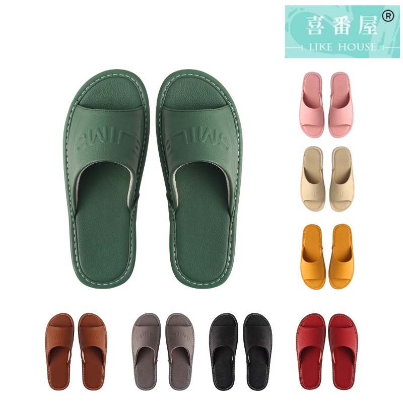 【喜番屋】頭層牛皮SMILE防滑室內拖鞋【LS08】真皮