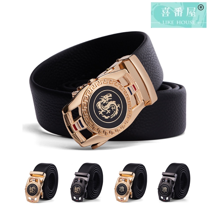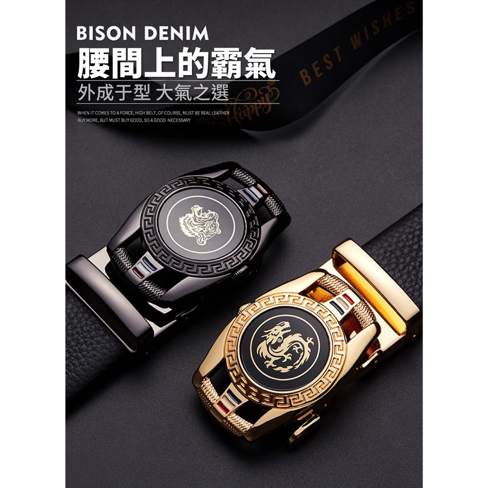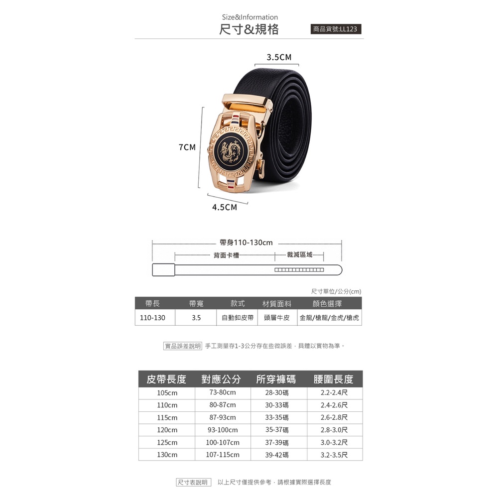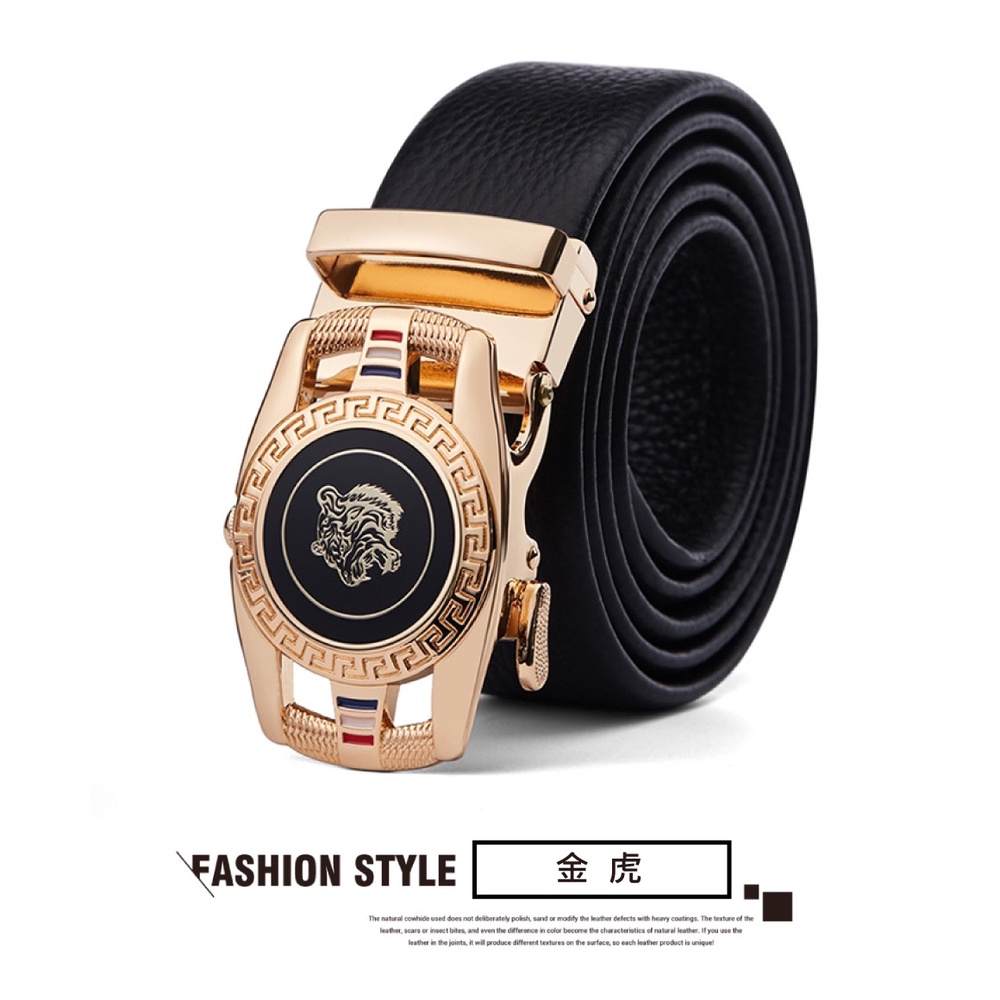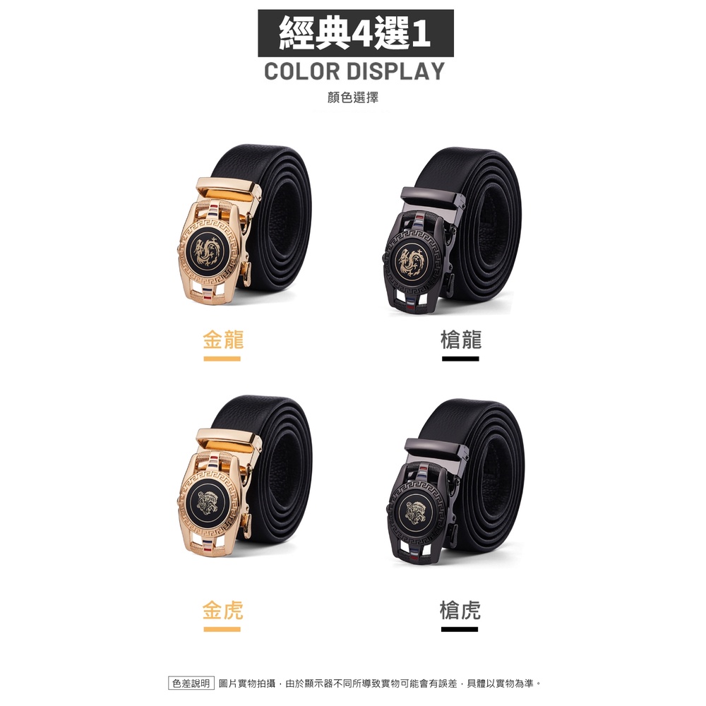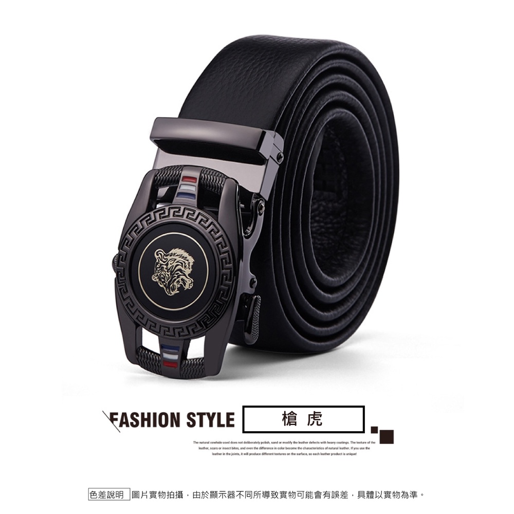 【喜番屋】真皮頭層牛皮帶寬3.5CM男士合金自動釦皮帶腰帶-龍虎圖騰【LL123】