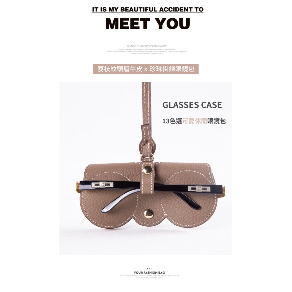【喜番屋】真皮頭層牛皮附掛繩便攜眼鏡包【LW07】