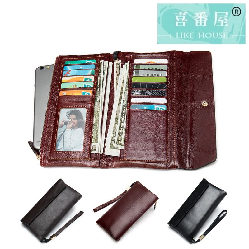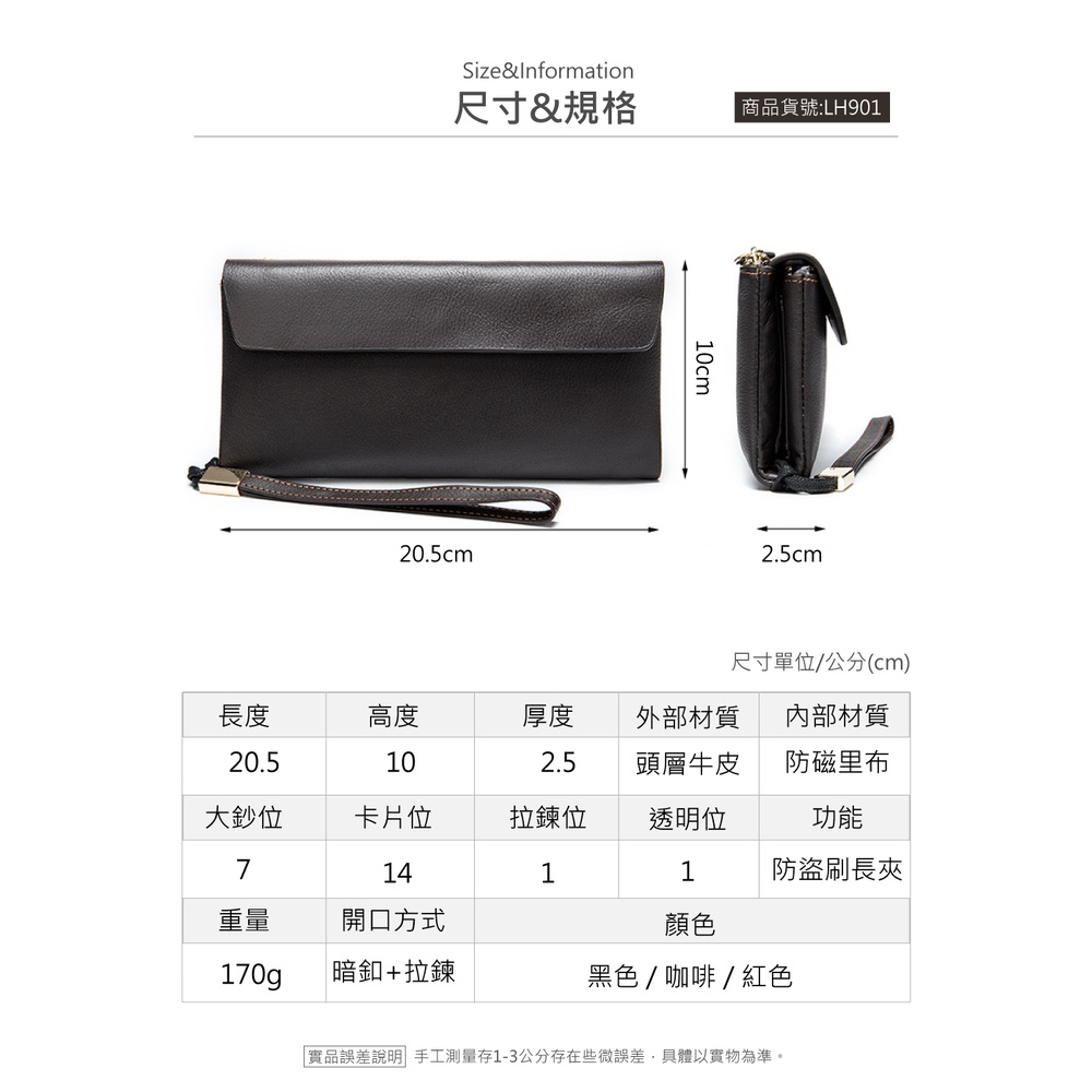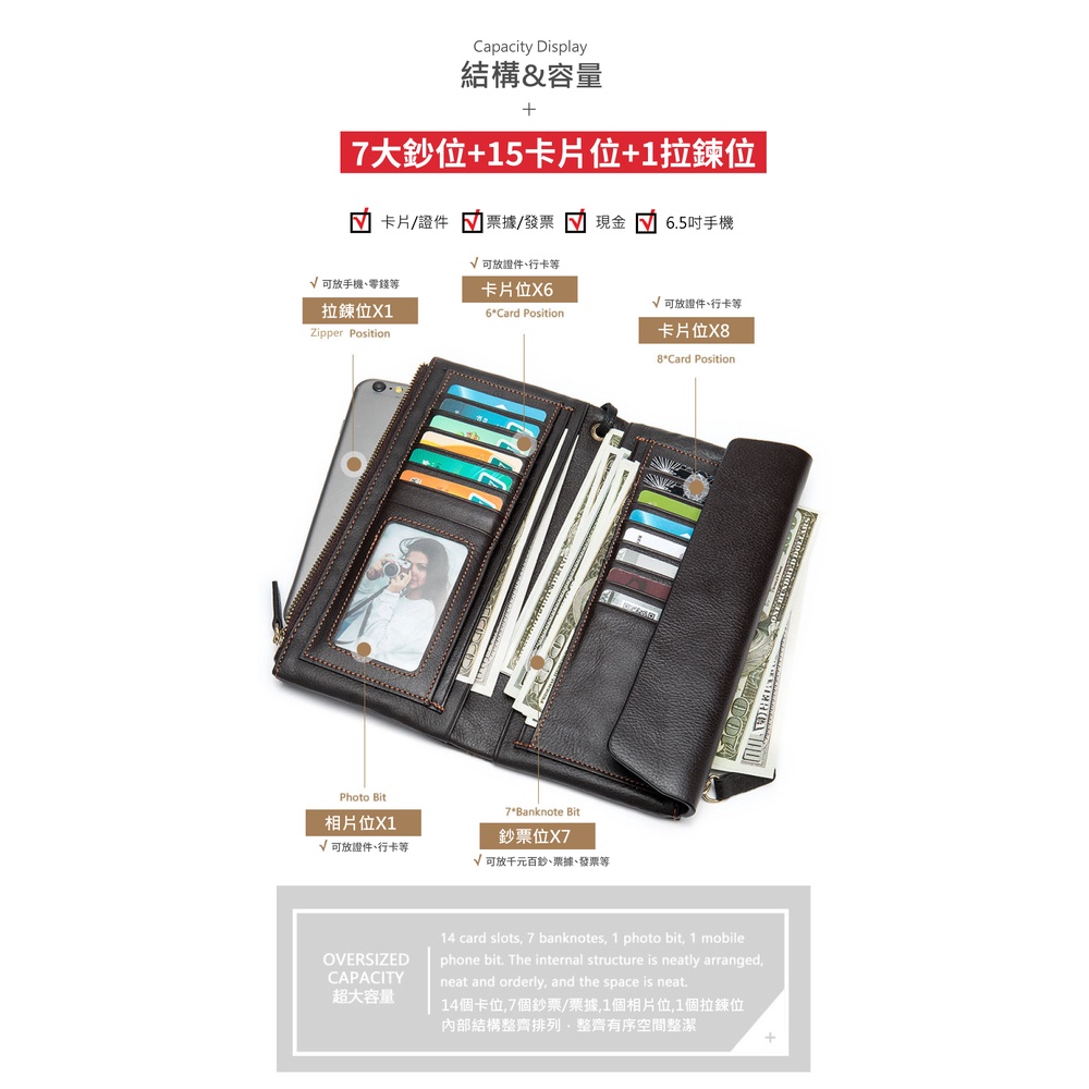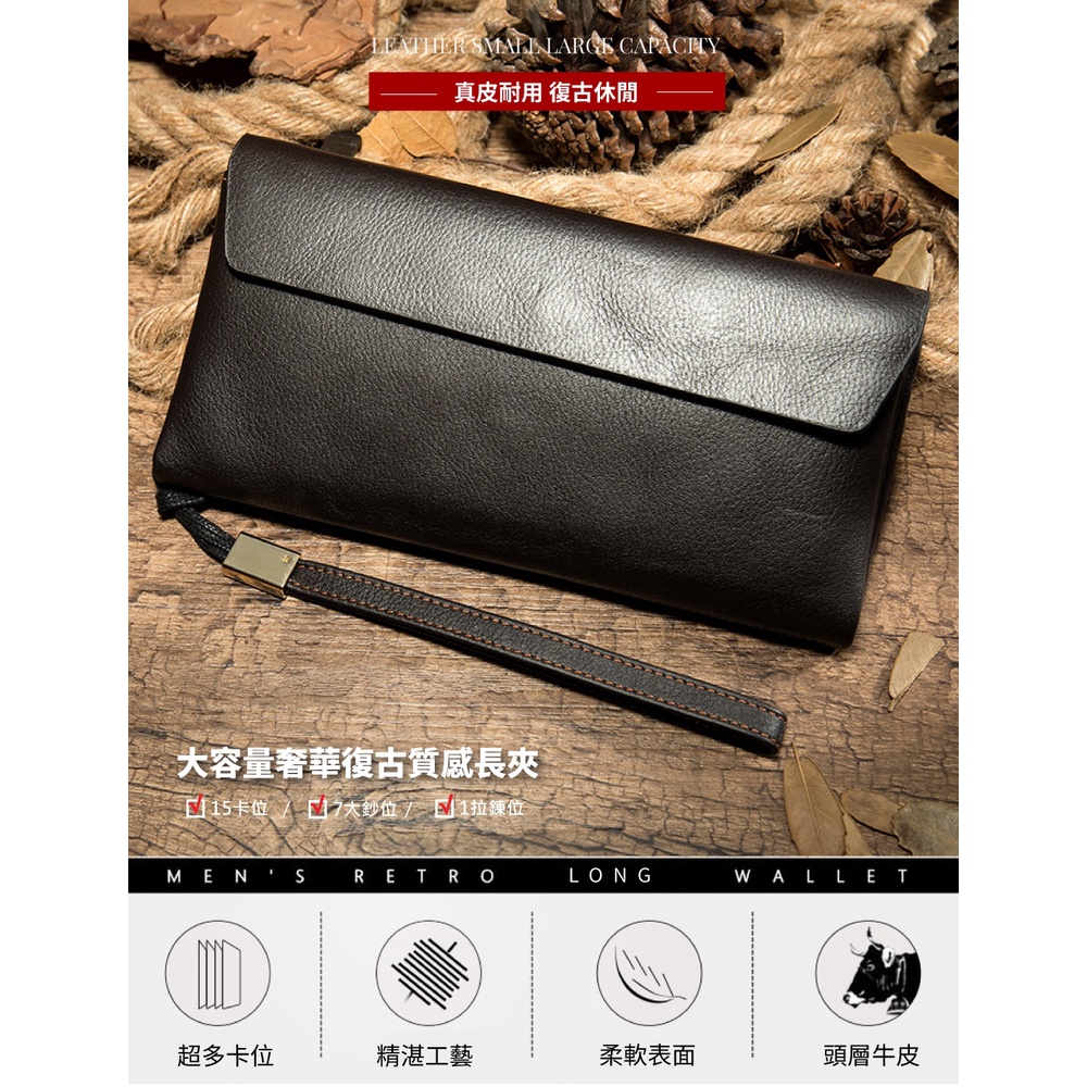 【喜番屋】真皮頭層牛皮14卡位附手腕帶男士皮夾錢包長夾男夾【LH901】