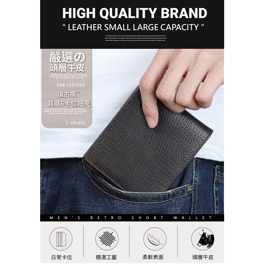 【喜番屋】頭層牛皮男士短夾【LH867】真皮 6卡位 輕薄 皮夾 錢包 男夾