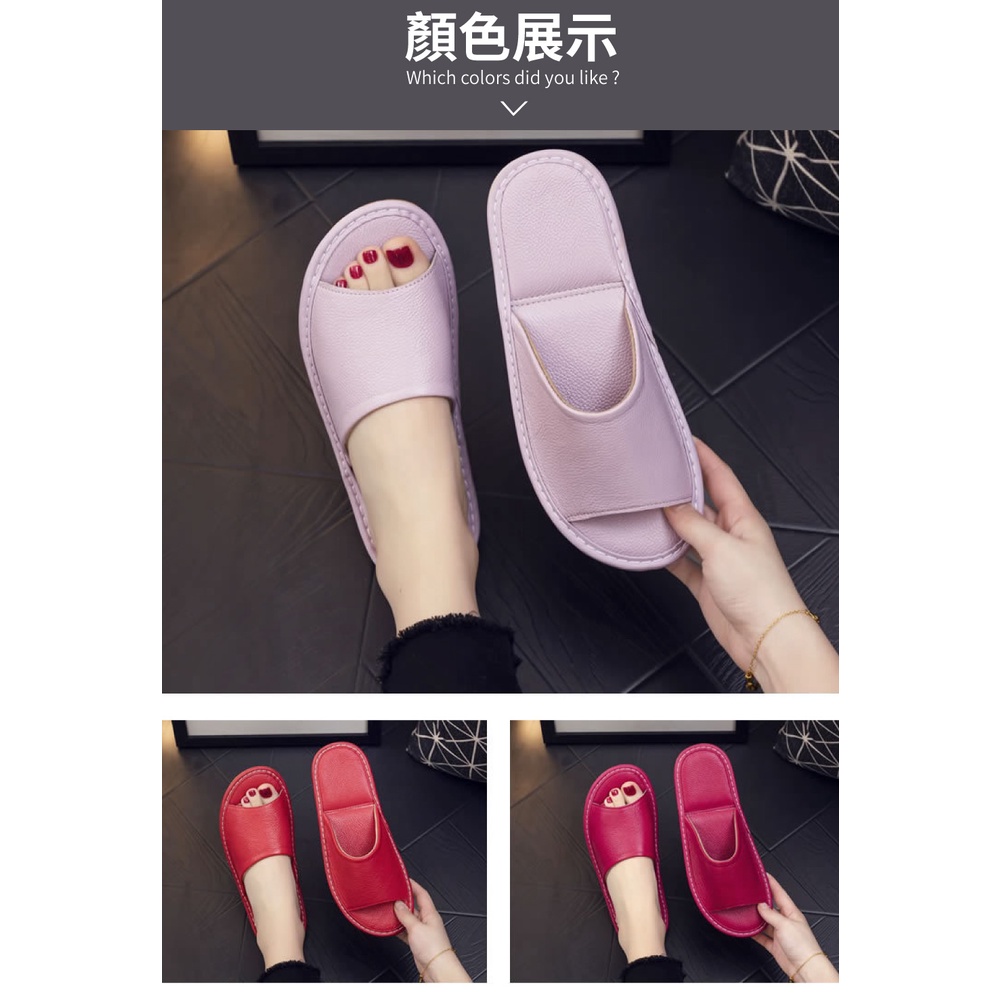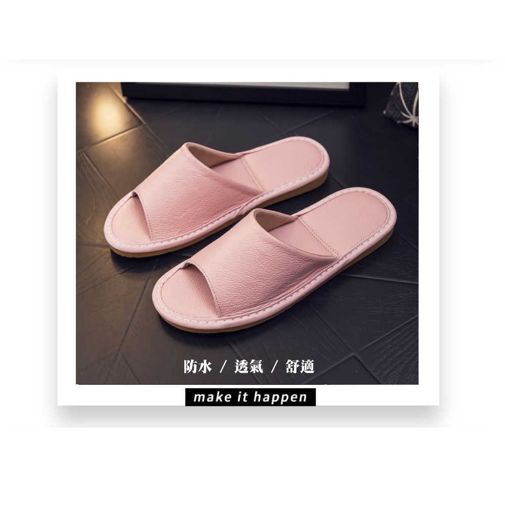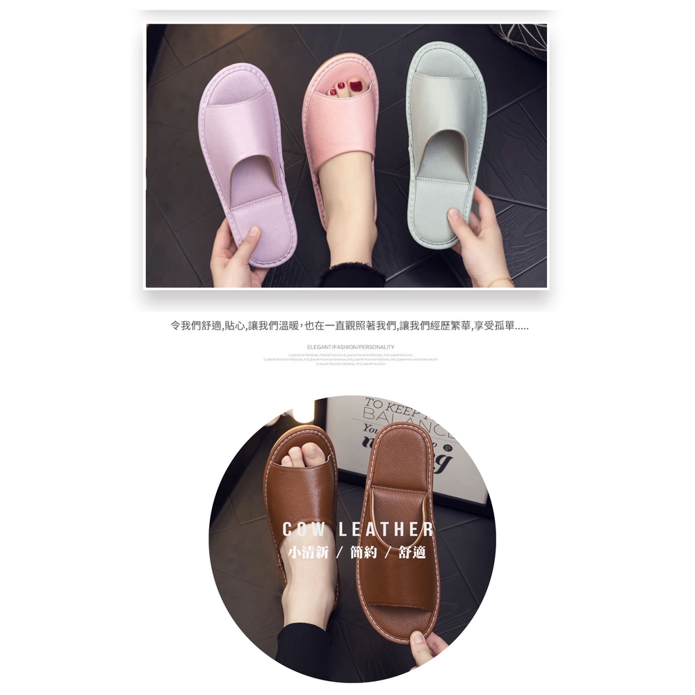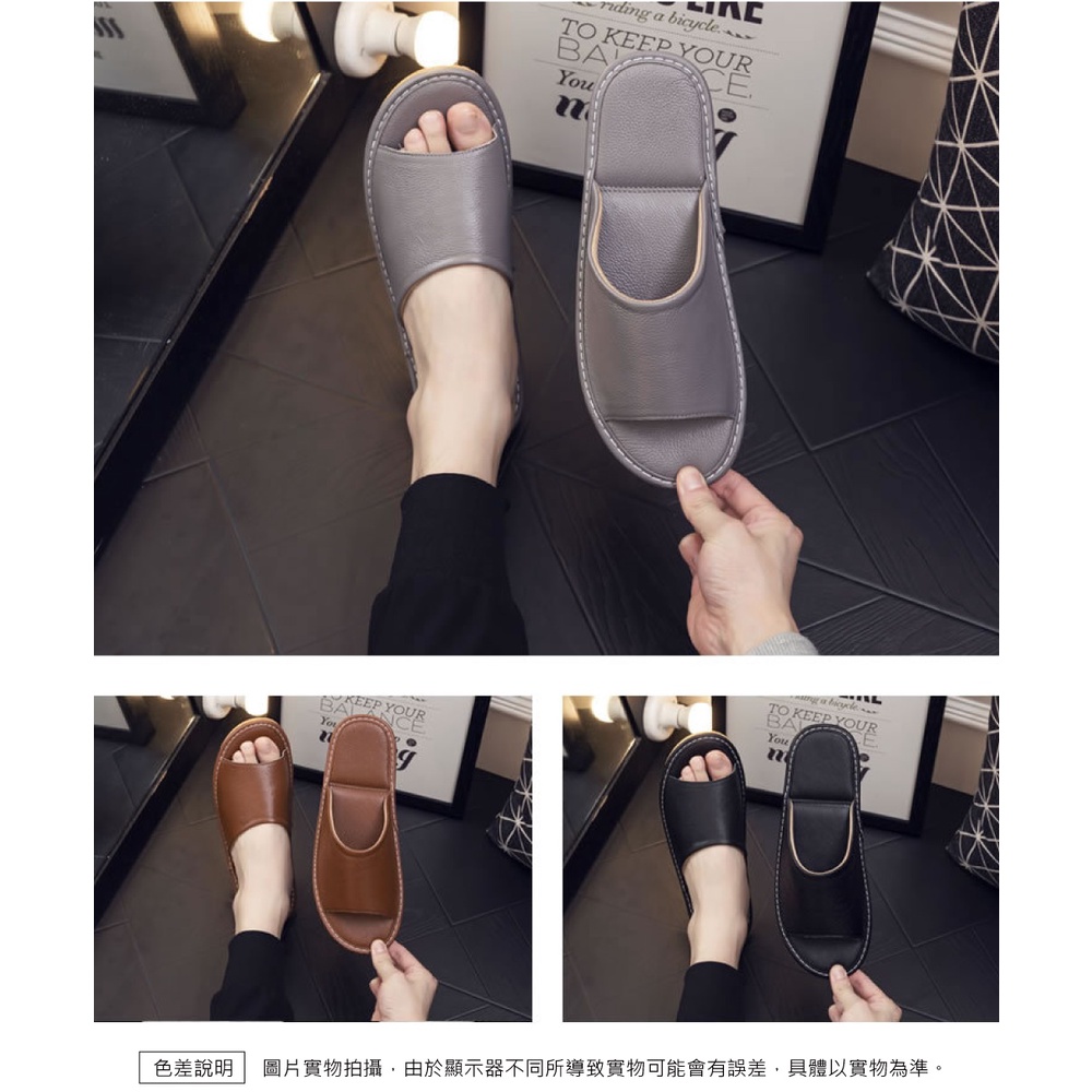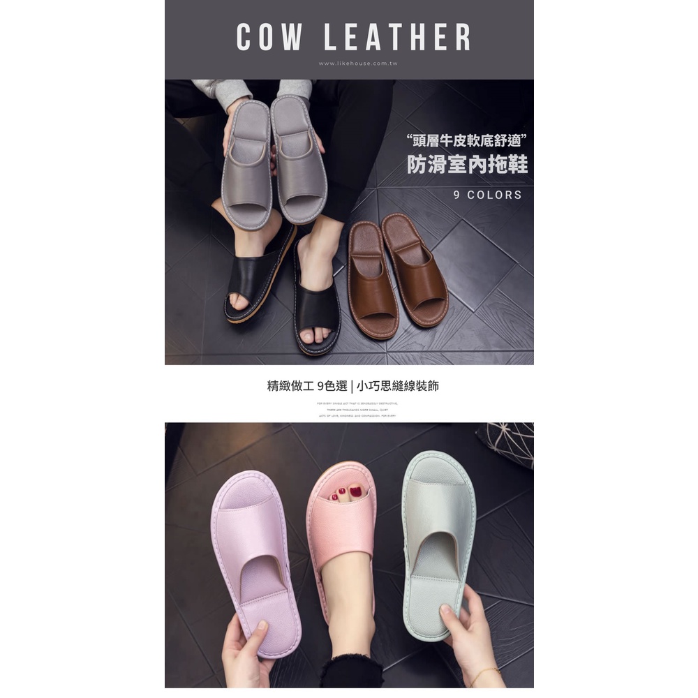 【喜番屋】真皮頭層牛皮防滑軟底縫線裝飾室內拖鞋【LS06】