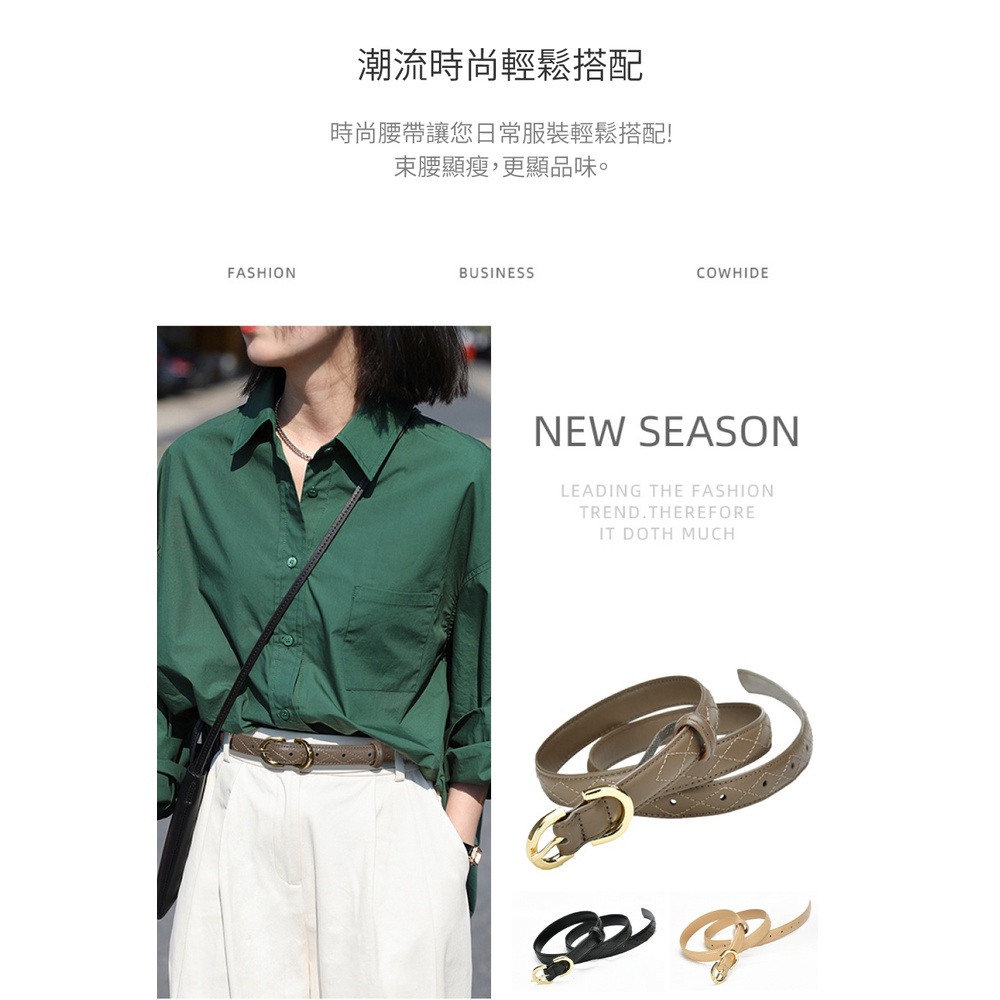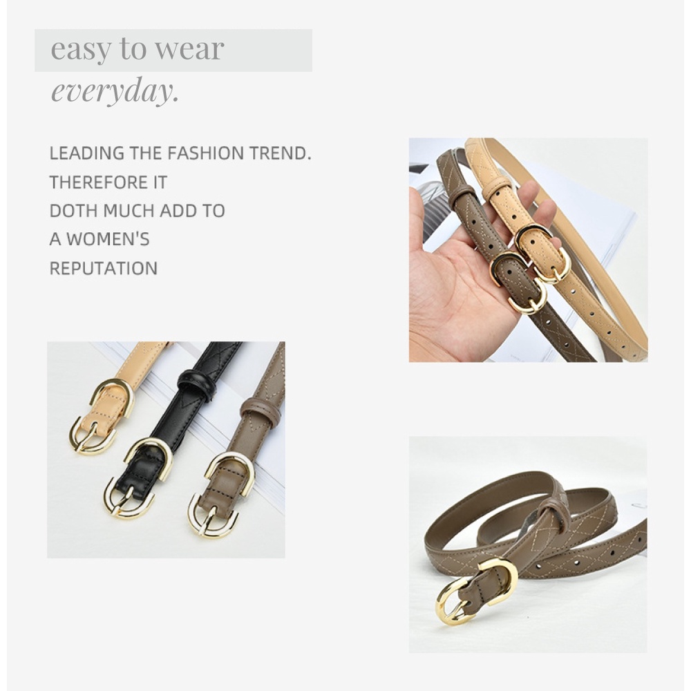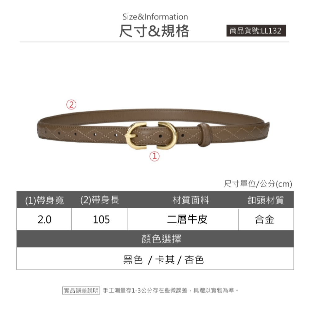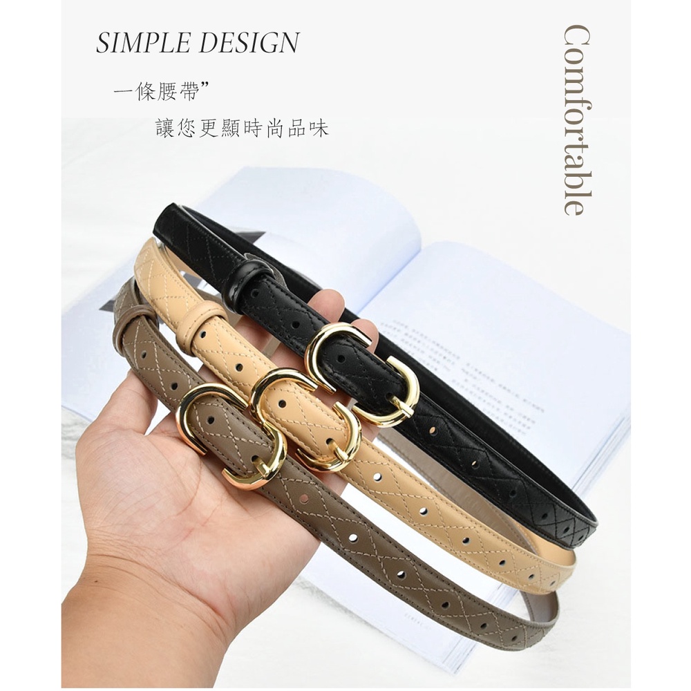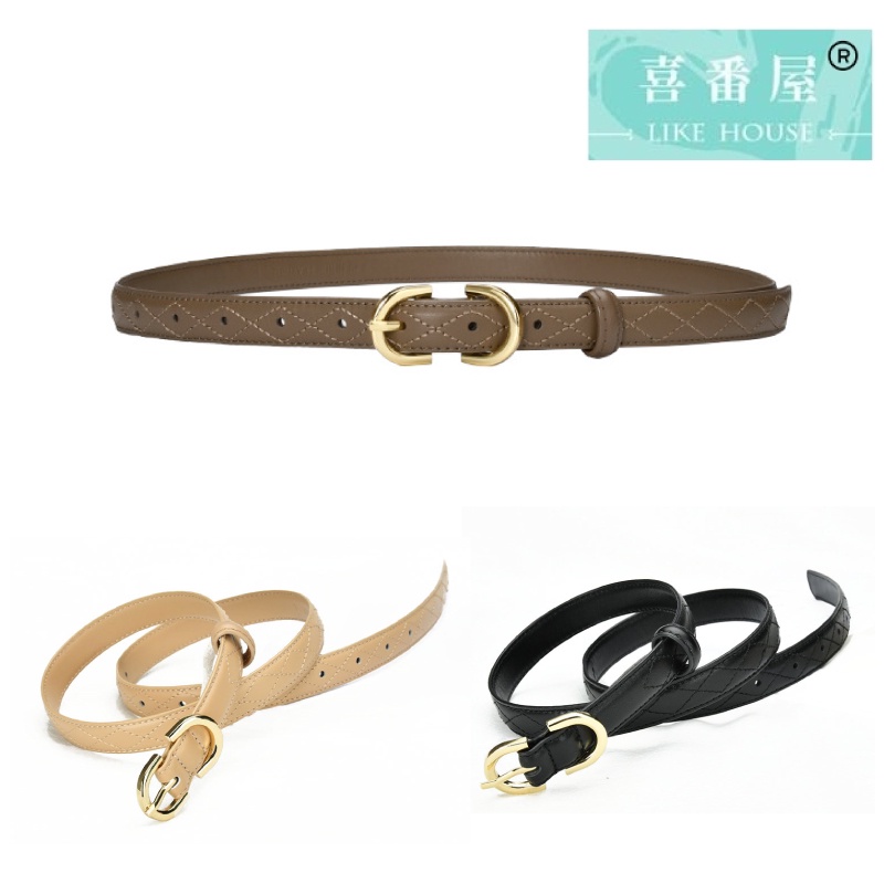 【喜番屋】真皮牛皮帶寬2CM針釦菱格紋女士腰帶皮帶【LL132】