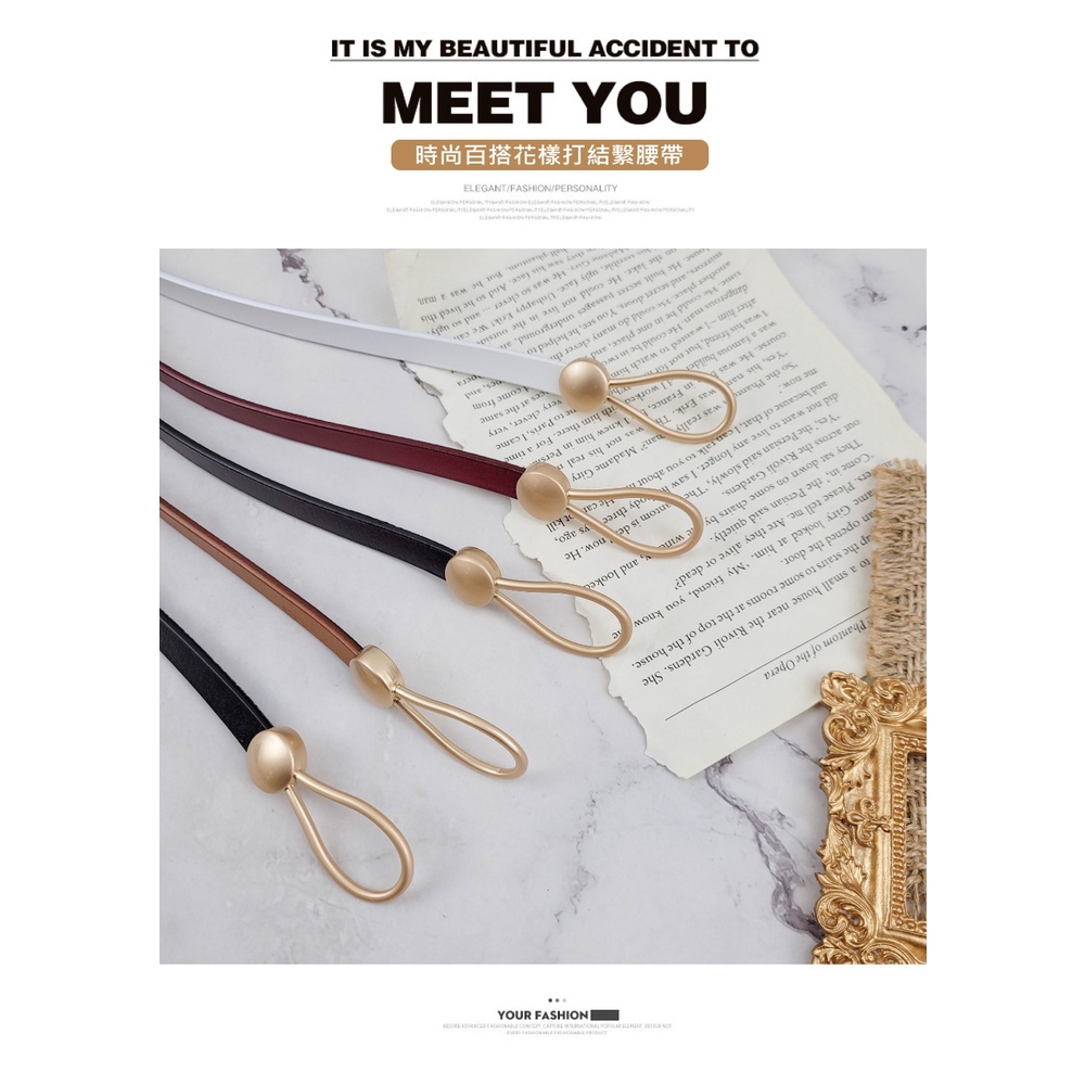 【喜番屋】牛皮女士打結腰帶【LL124】真皮帶寬1CM 顯瘦 皮帶 女裝配件