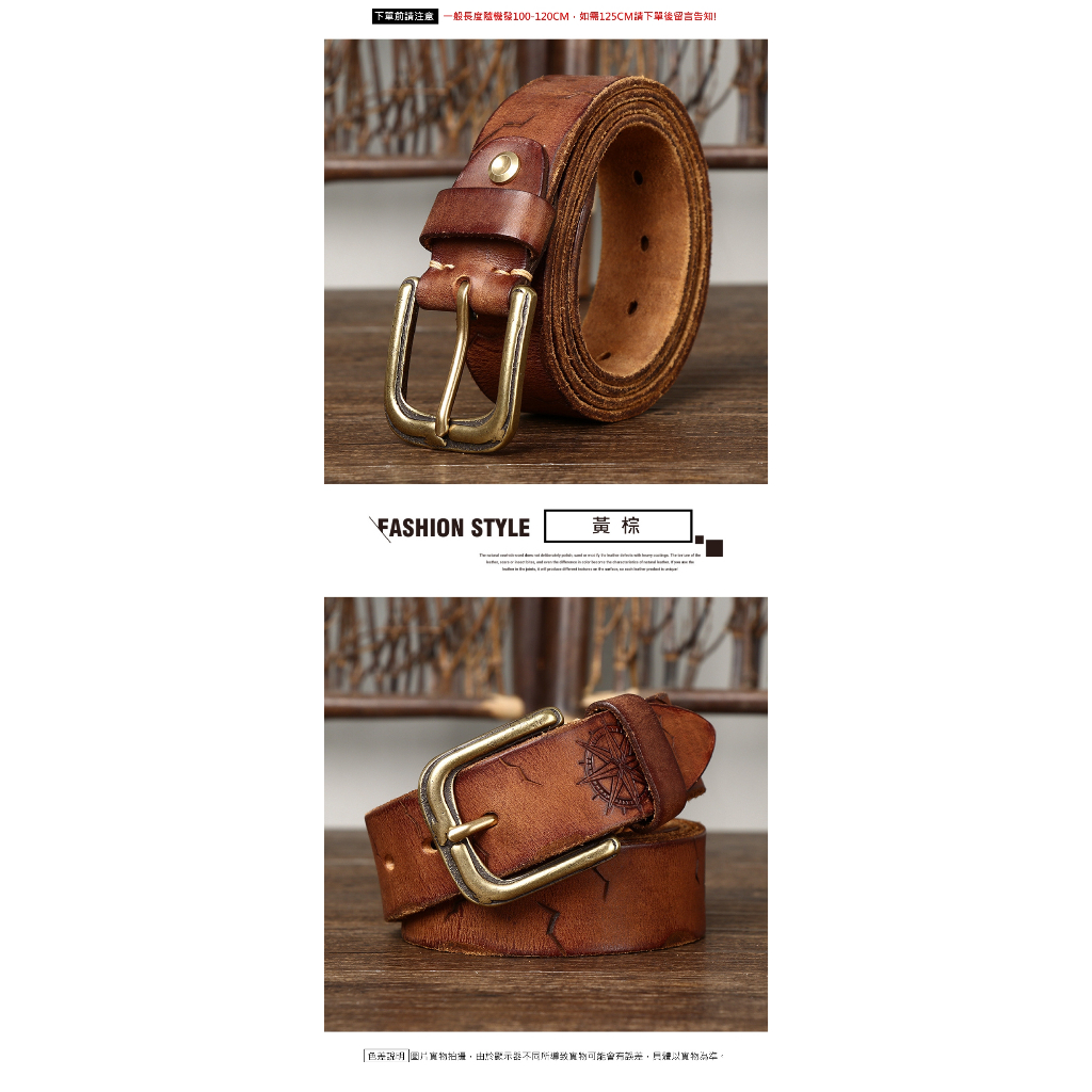 【喜番屋】真皮頭層牛皮帶寬3.8CM男士針扣皮帶-雕花裂紋【LL172】