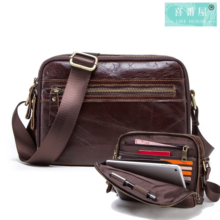 【喜番屋】頭層牛皮男士肩背包【LB447】真皮 側背包 斜背包 男包