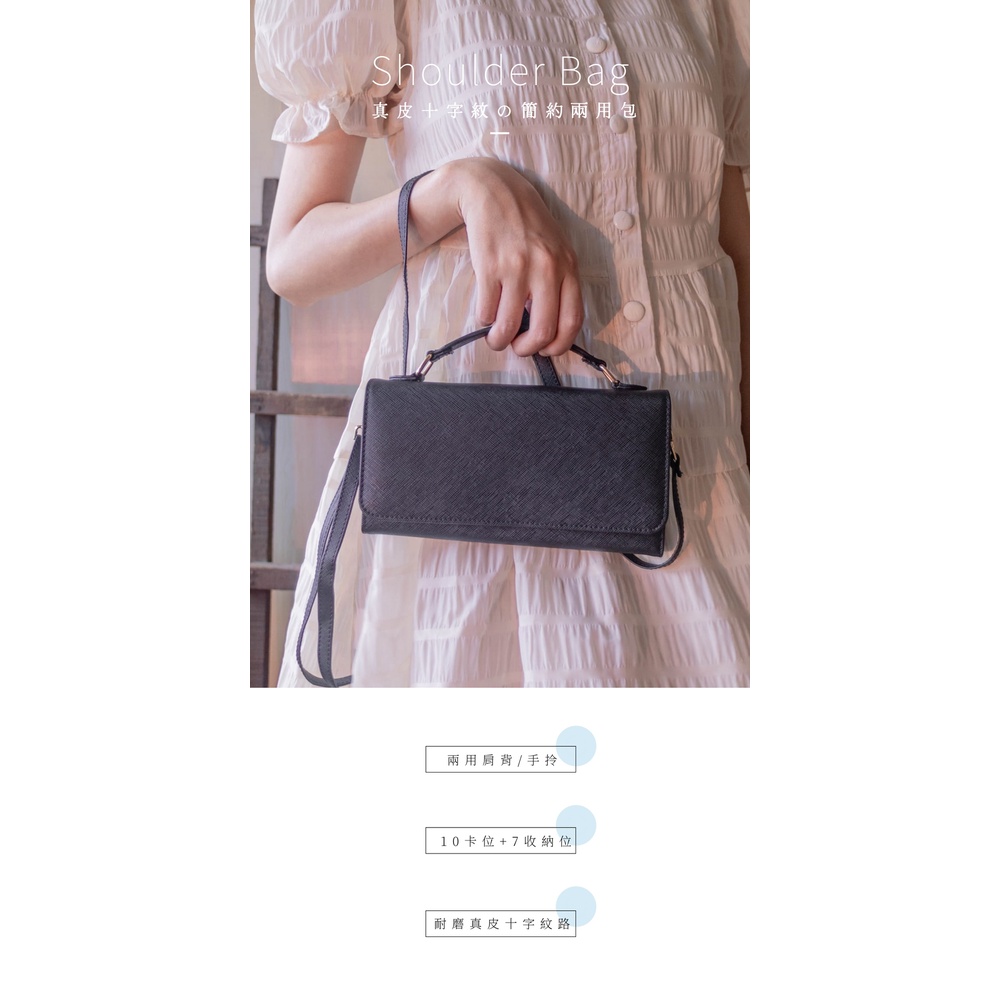 【喜番屋】真皮十字紋牛皮2WAY女士肩背皮夾錢包長夾晚宴包女夾女包【LH863】