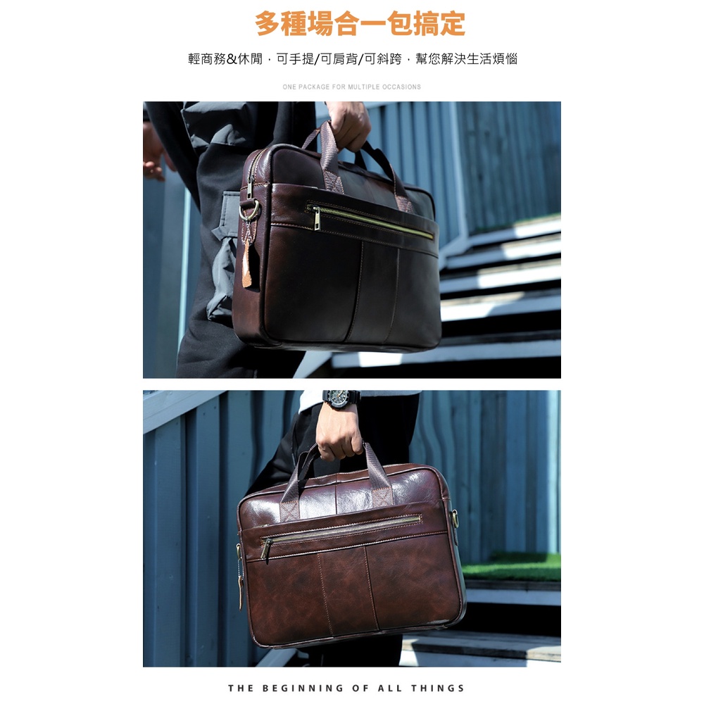 【喜番屋】頭層牛皮男士手提包【LB862】真皮 可肩背 筆電包 商務包 男包