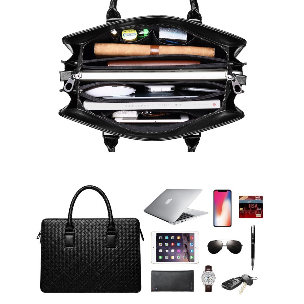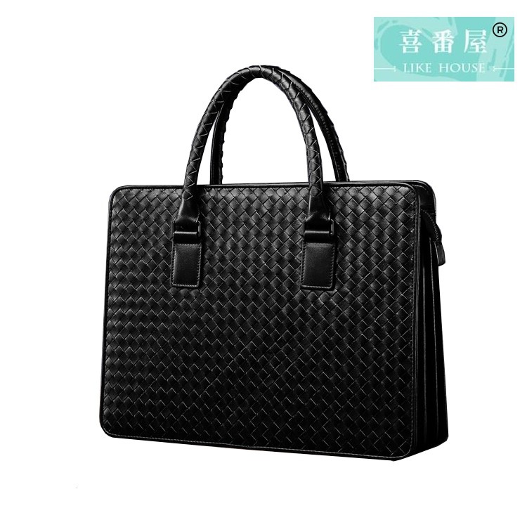 【喜番屋】真皮頭層牛皮編織男士手提包【KN21】