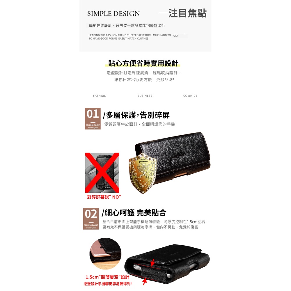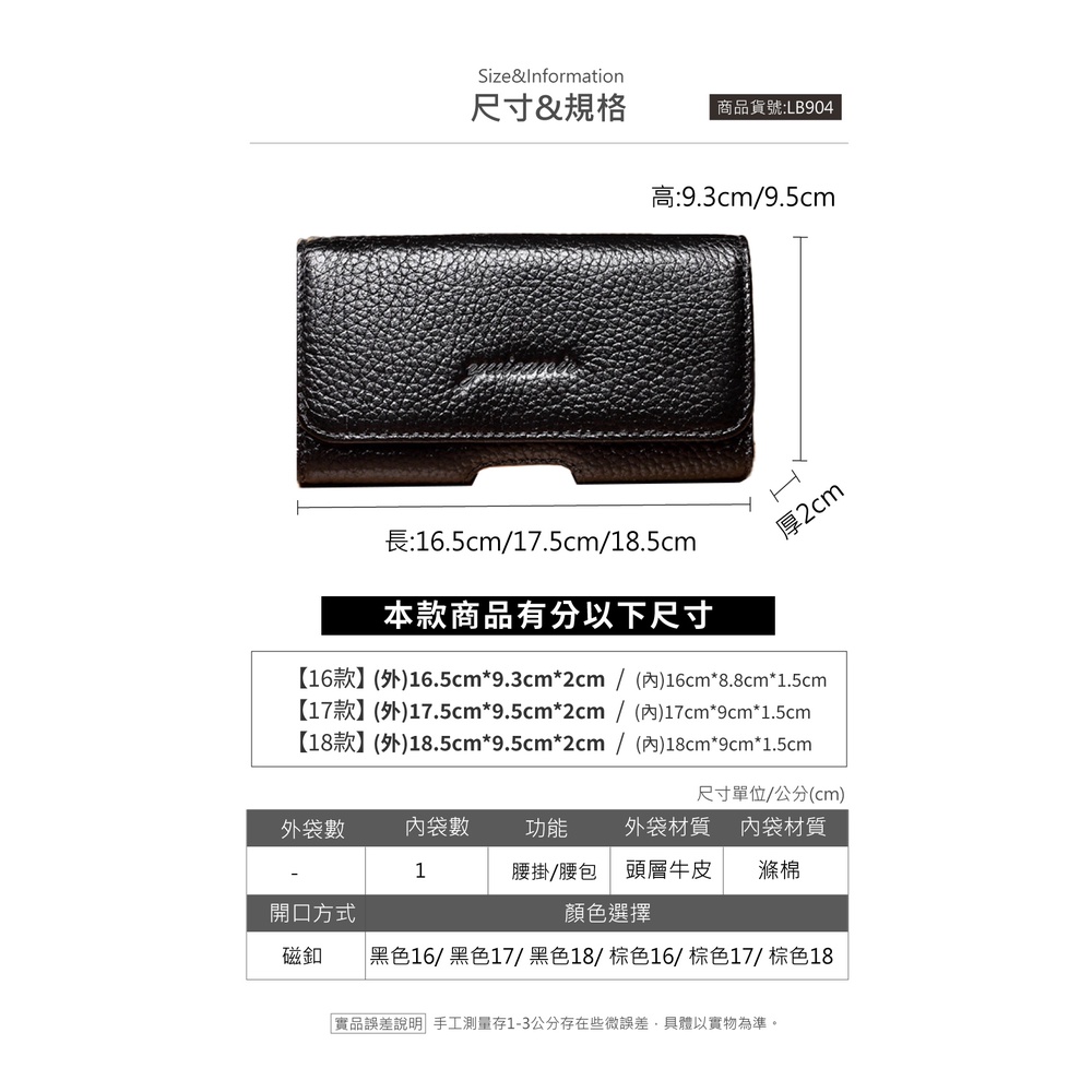 【喜番屋 】真皮頭層牛皮薄橫款男士手機腰包男包【LB904】