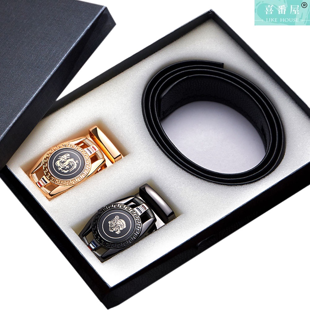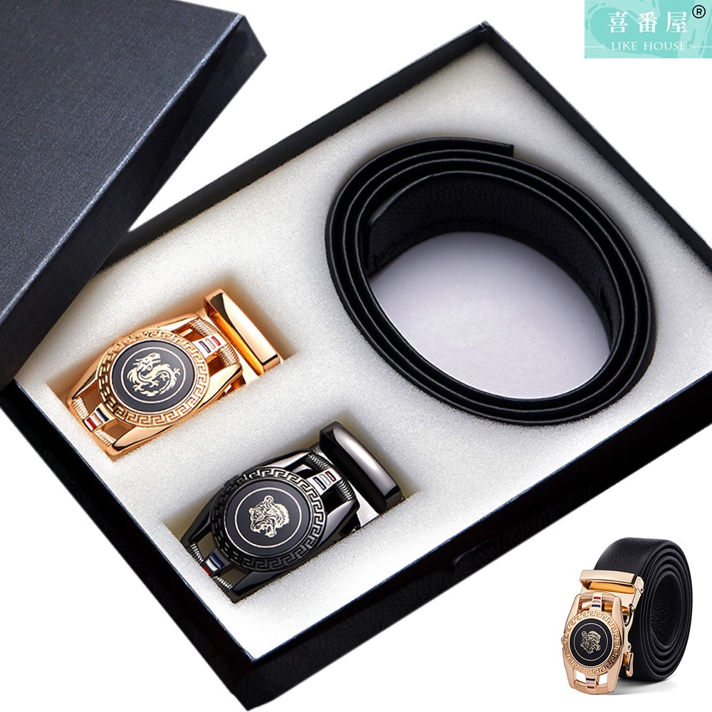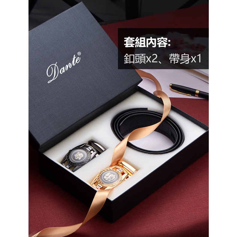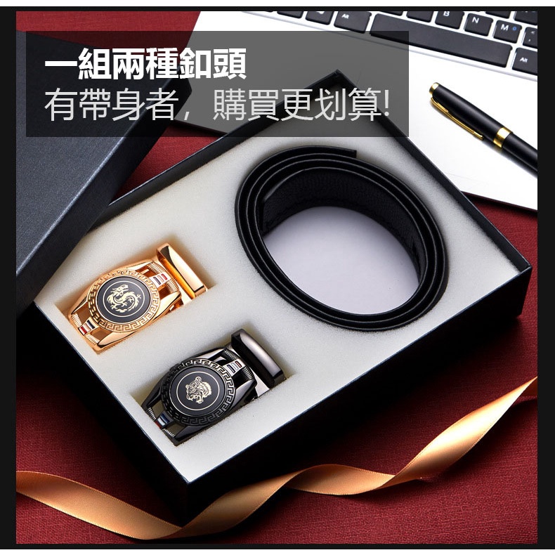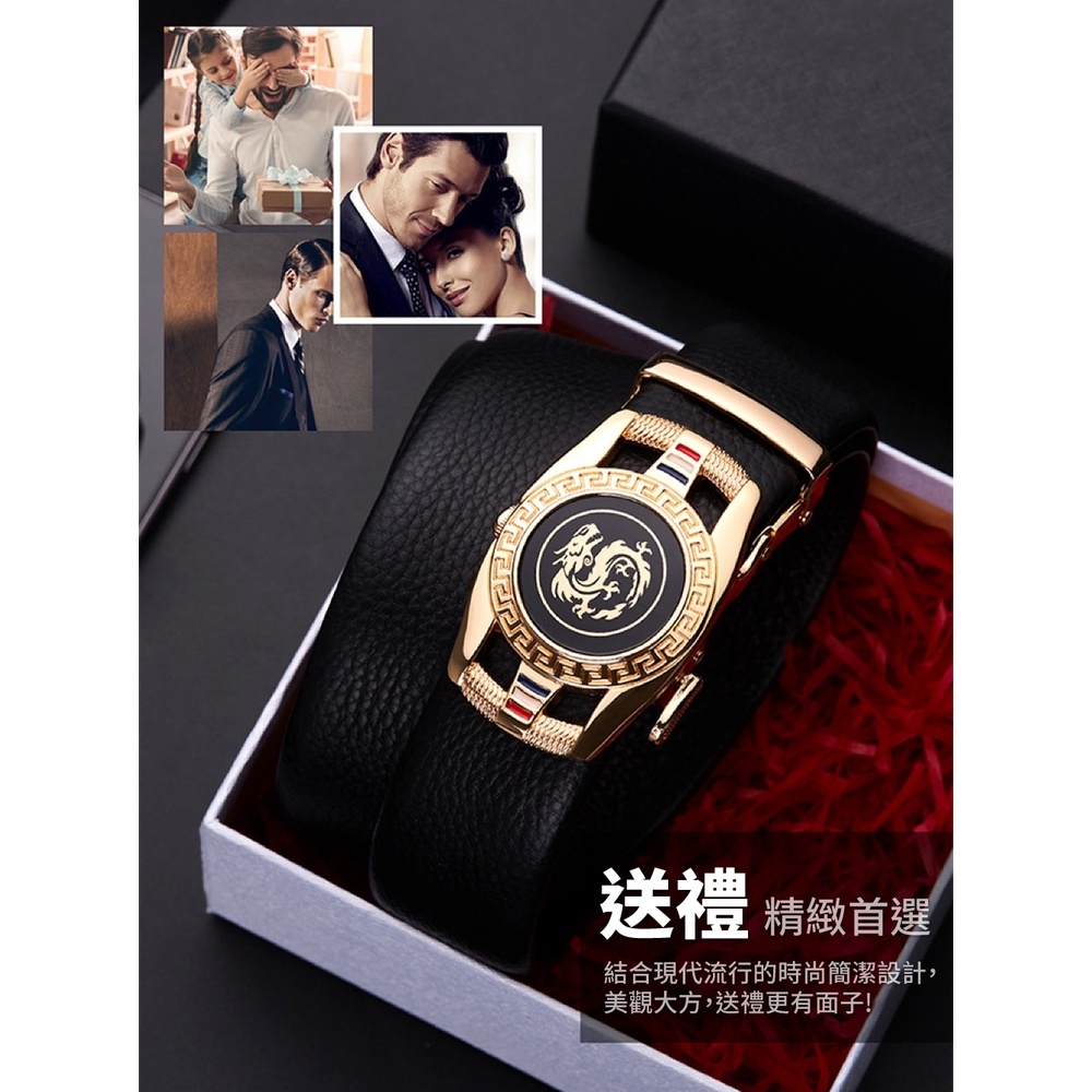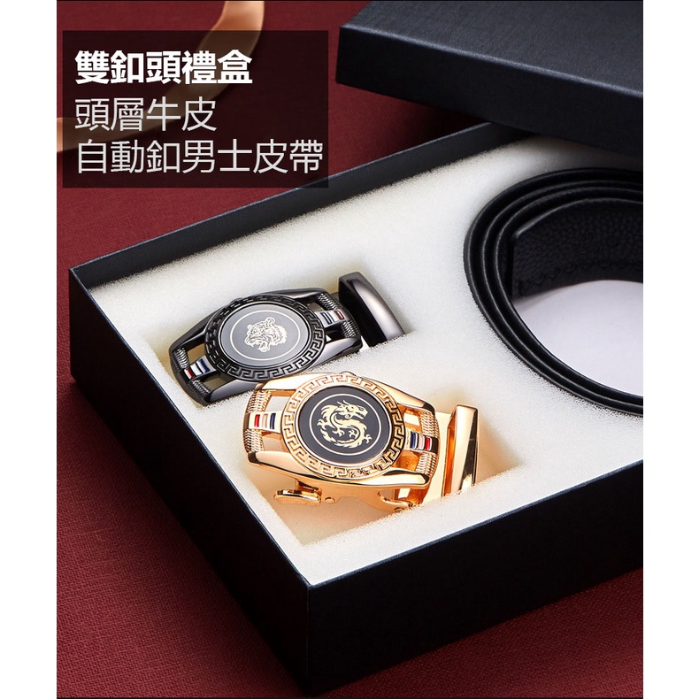【喜番屋】頭層牛皮自動釦男士皮帶-雙釦頭禮盒【LL141】真皮 帶身3.5CM 男裝配件