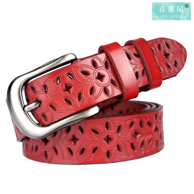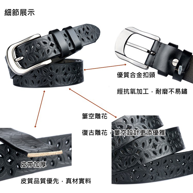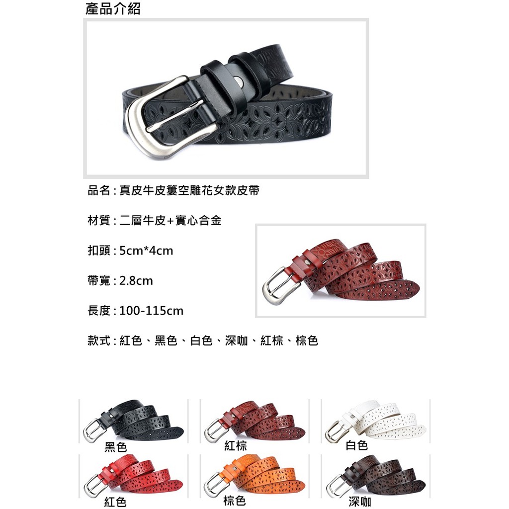 【喜番屋】真皮牛皮鏤空女性帶寬2.8CM針扣皮帶腰帶褲帶女裝服飾配件【LL60】