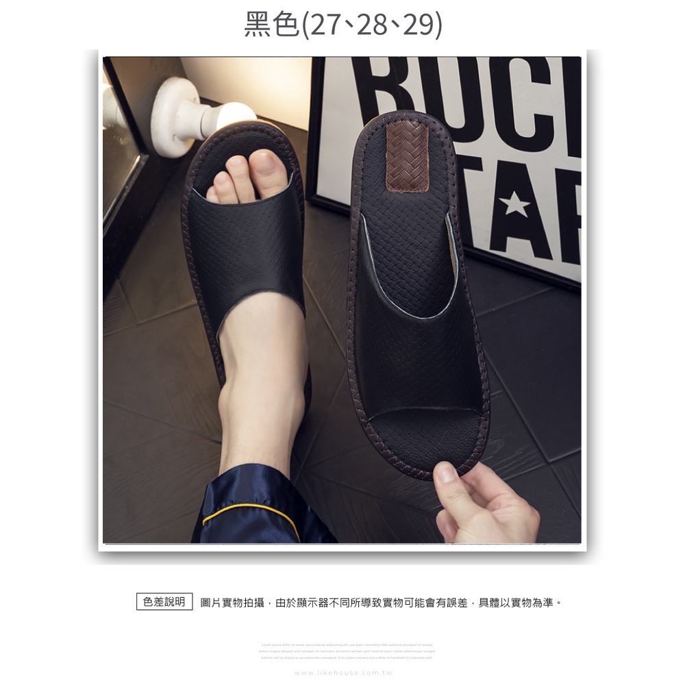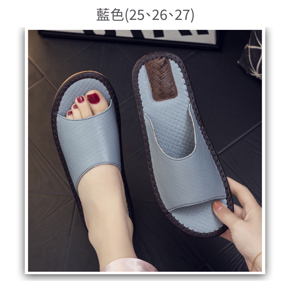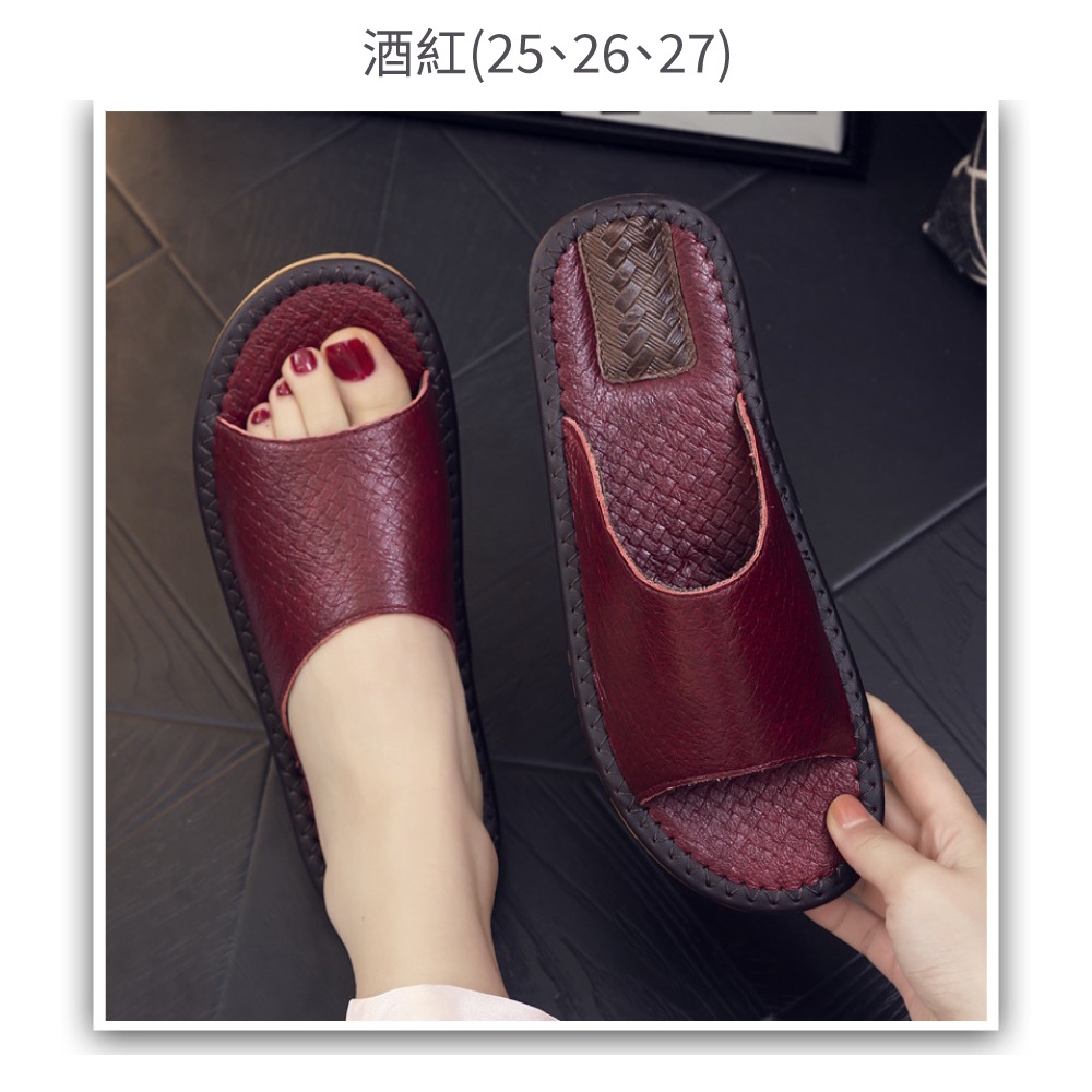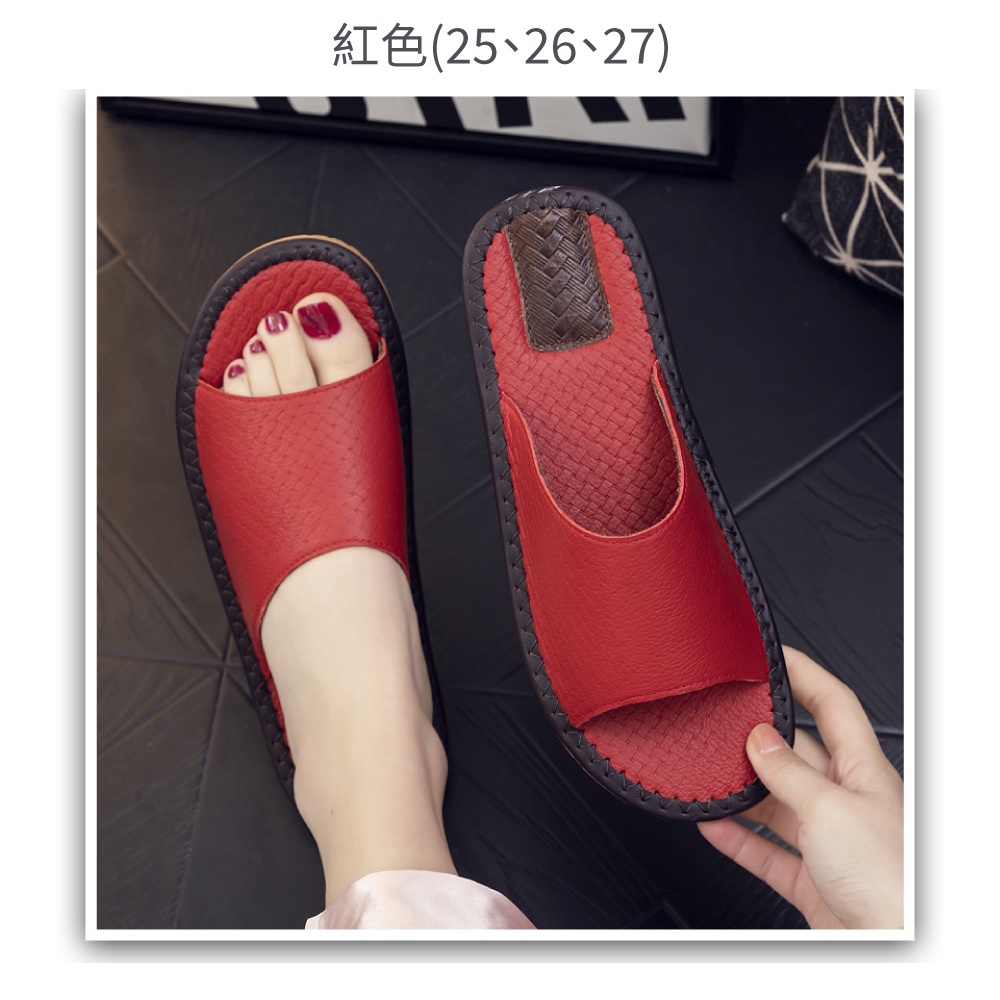 【喜番屋】真皮頭層牛皮編織紋防滑室內拖鞋【LS12】