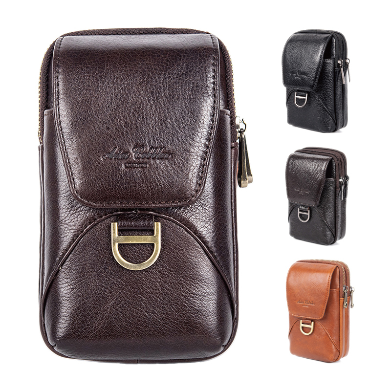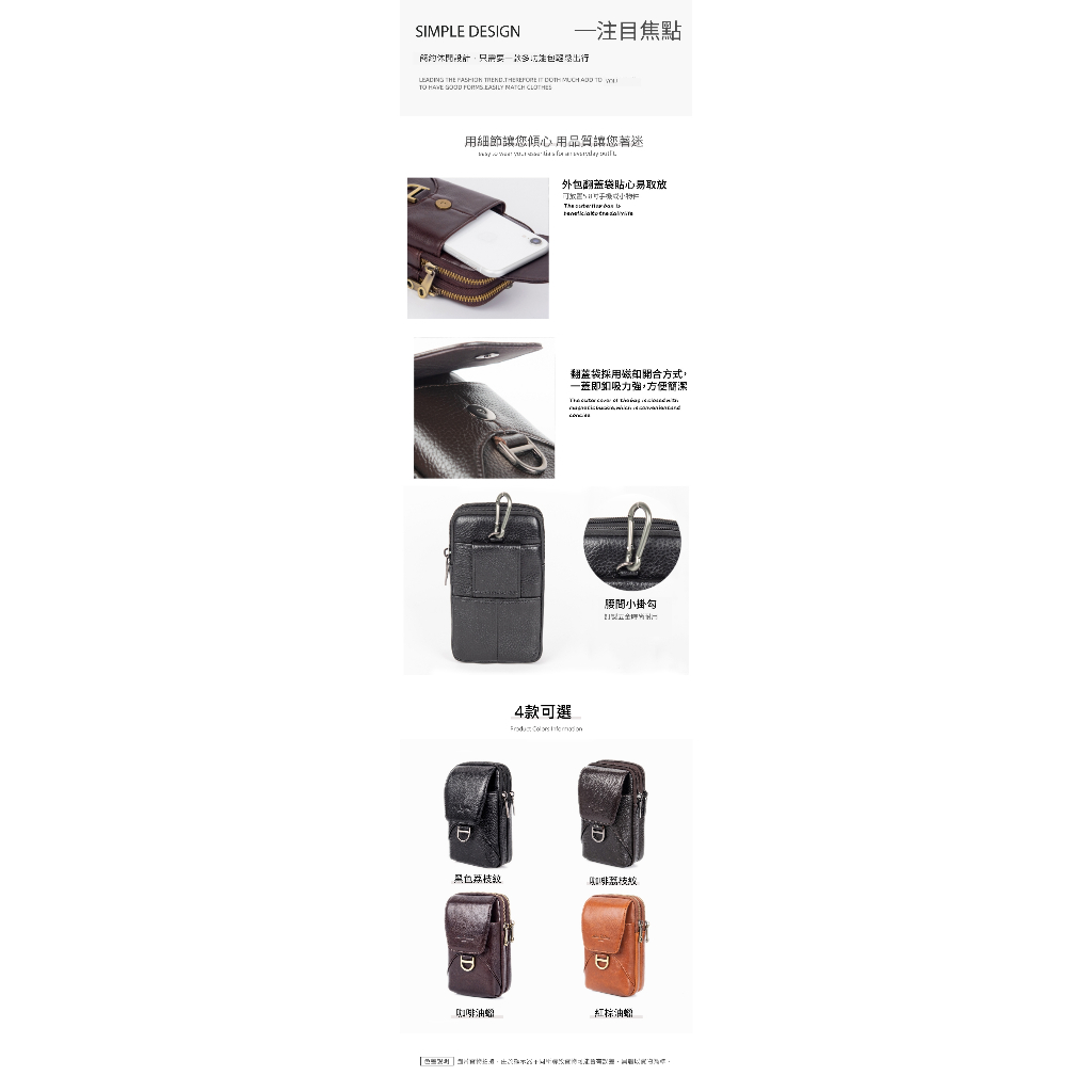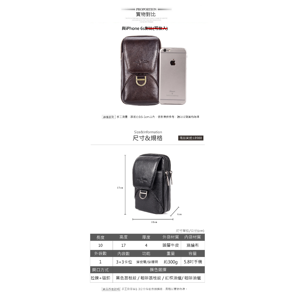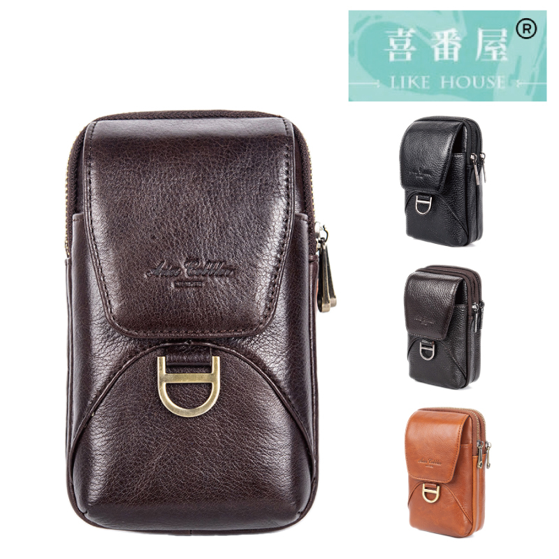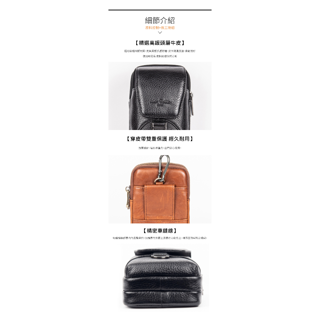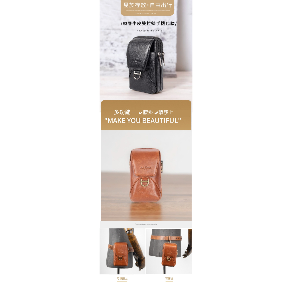 【喜番屋】頭層牛皮男士雙拉鍊手機包【LB988】真皮 可腰掛 腰包 男包