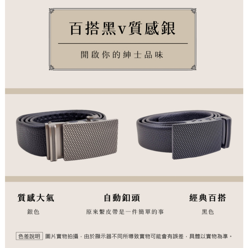 【喜番屋】真皮頭層牛皮帶寬3.5cm男士合金自動釦-斜格紋【LL155】