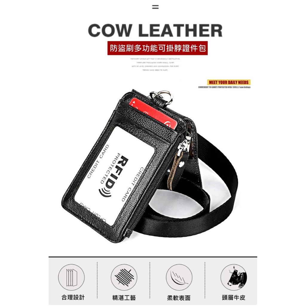 【喜番屋】頭層牛皮掛脖證件包【CB105】真皮 防盜刷 RFID 卡片包 卡片夾 證件套