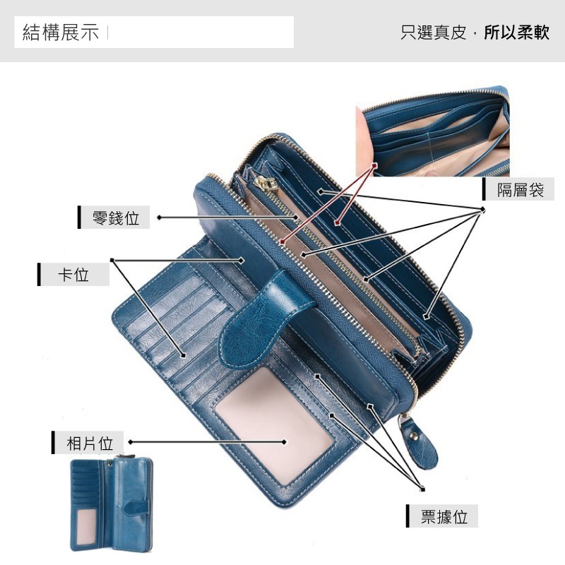 【喜番屋】油蠟牛皮女士長夾【LH632】真皮 19卡位 皮夾 皮包 錢包 女夾
