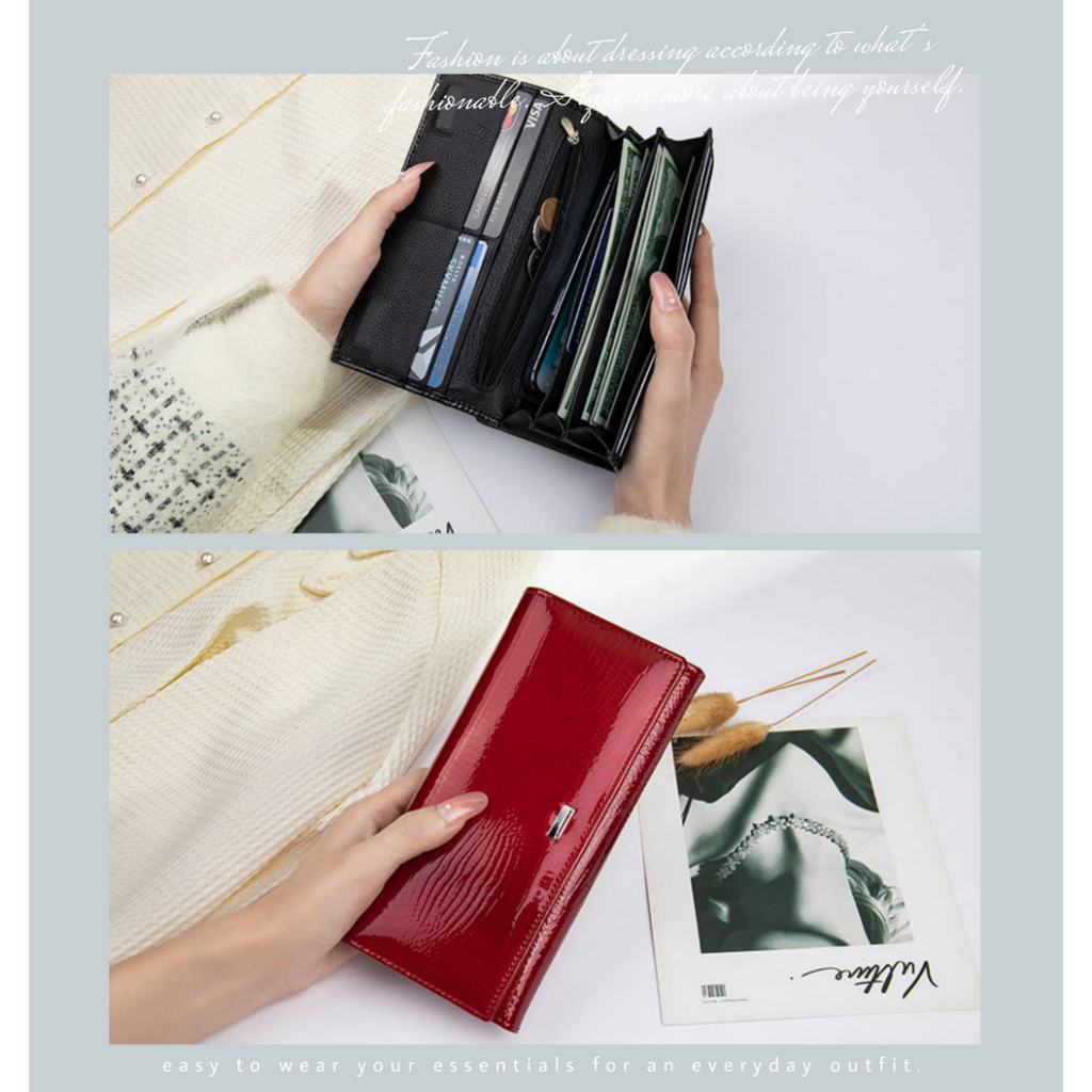 【喜番屋】真皮頭層漆皮11卡位女士皮夾皮包錢包長夾女夾【LH995】