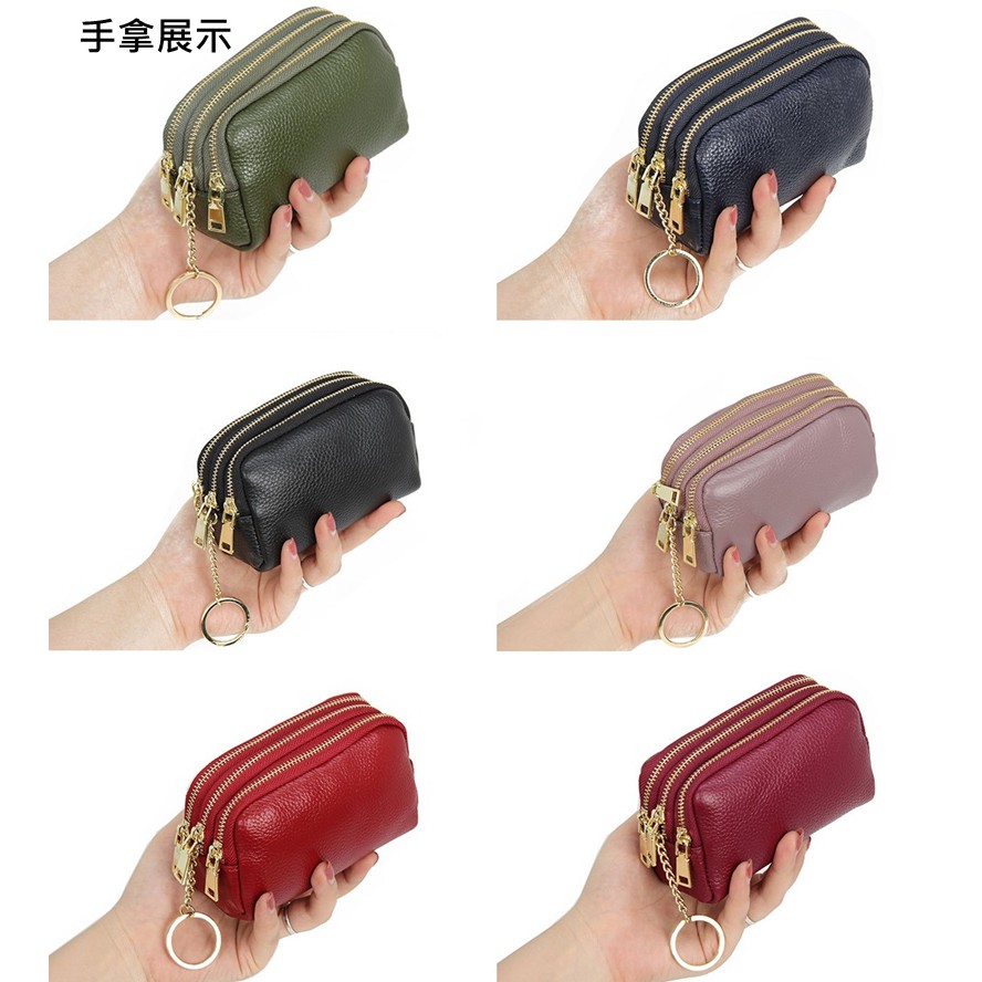 【喜番屋】頭層牛皮拉鍊零錢包【LH633】真皮 3拉鍊 硬幣包 收納包 女夾