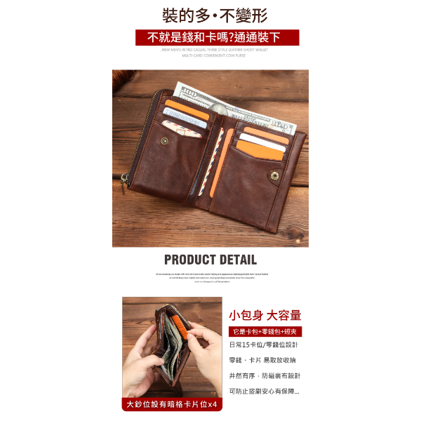 【喜番屋】頭層牛皮L型零錢袋男士短夾【LH978】RFID 真皮 12卡位 皮夾 錢包 男夾