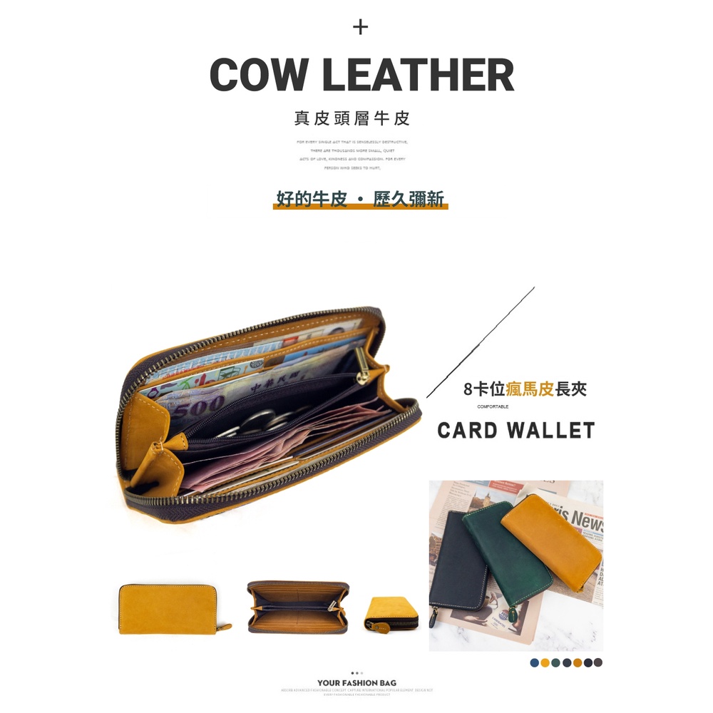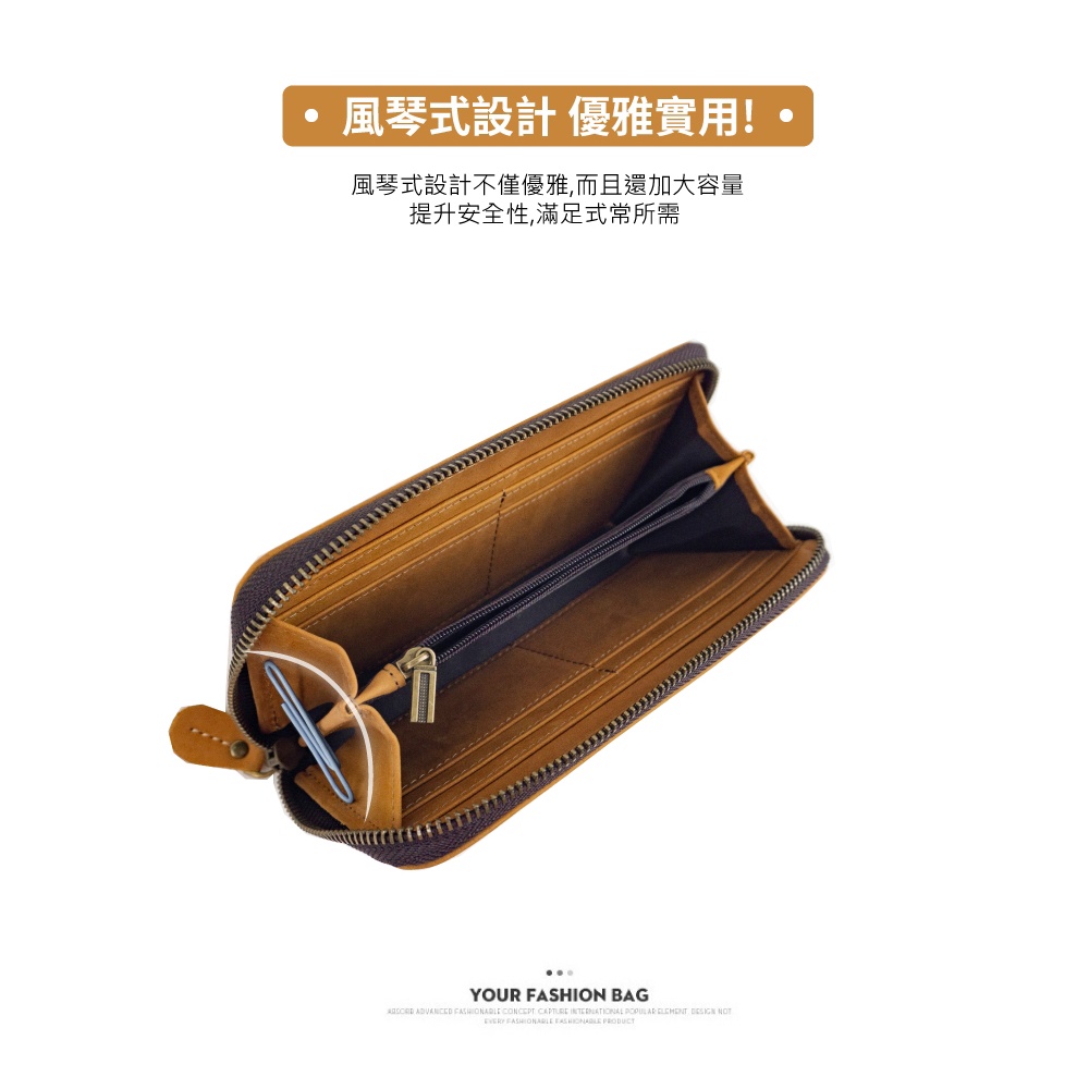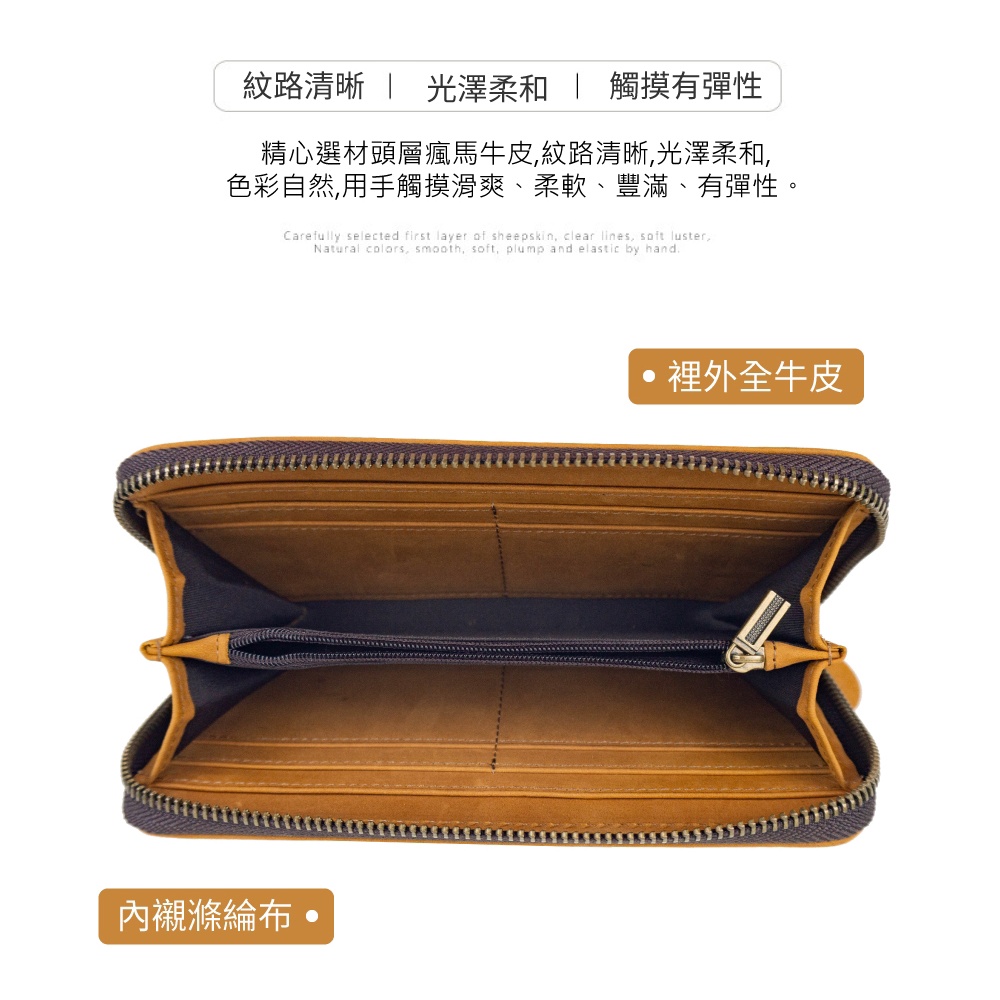 【喜番屋】頭層瘋馬牛皮男士拉鍊長夾【LH449】真皮 皮夾 皮包 錢包 男夾