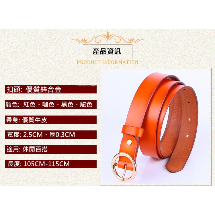 【喜番屋】真皮牛皮圓環針扣帶寬2.8CM女士皮帶【LL07】