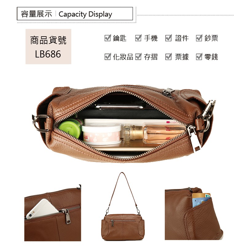 【喜番屋】真皮頭層牛皮簡約女士肩背包單肩包女包小包【LB686】