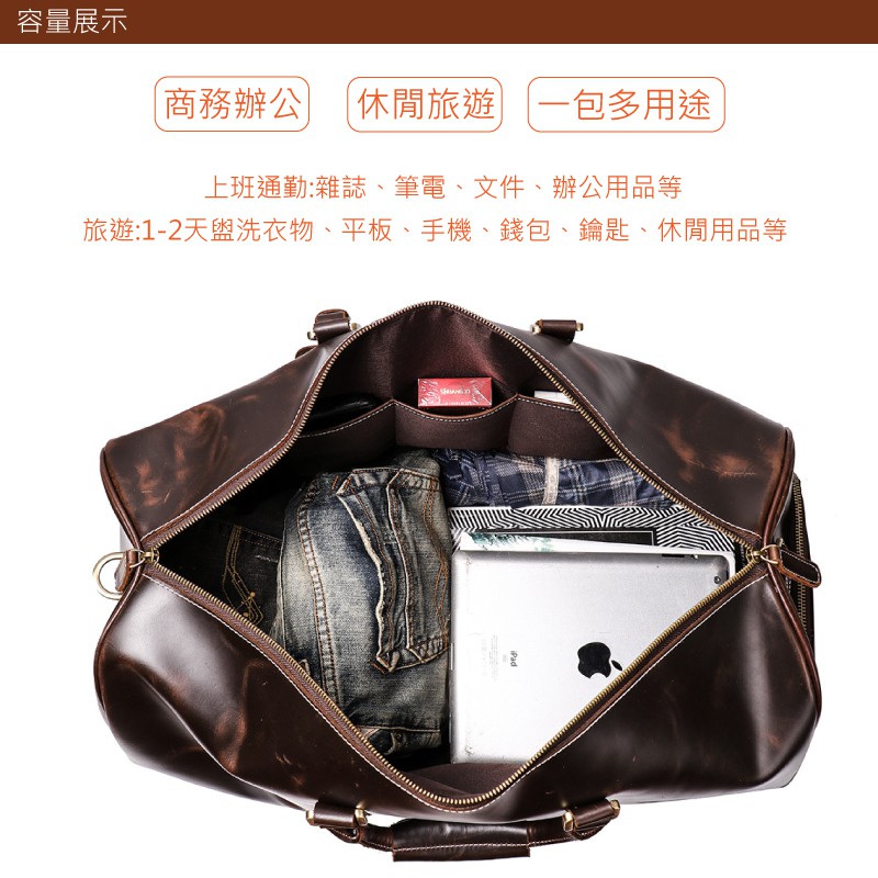【喜番屋】真皮頭層牛皮復古大容量男士旅行袋行李袋手提袋男包【LB544】