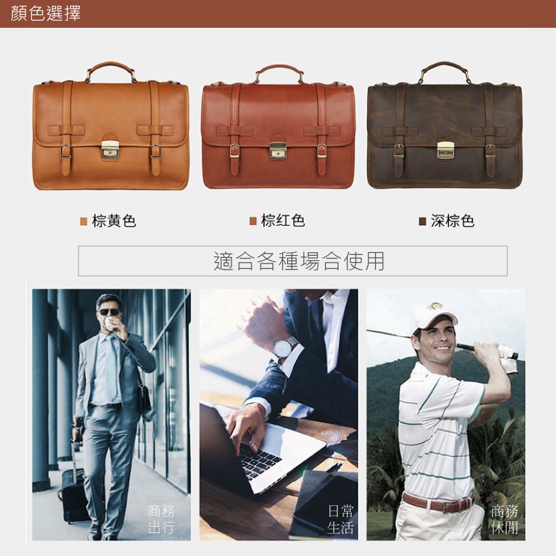 【喜番屋】頭層牛皮防盜鎖釦男士手提包【LB550】真皮 商務 公務包 公事包 電腦包 男包