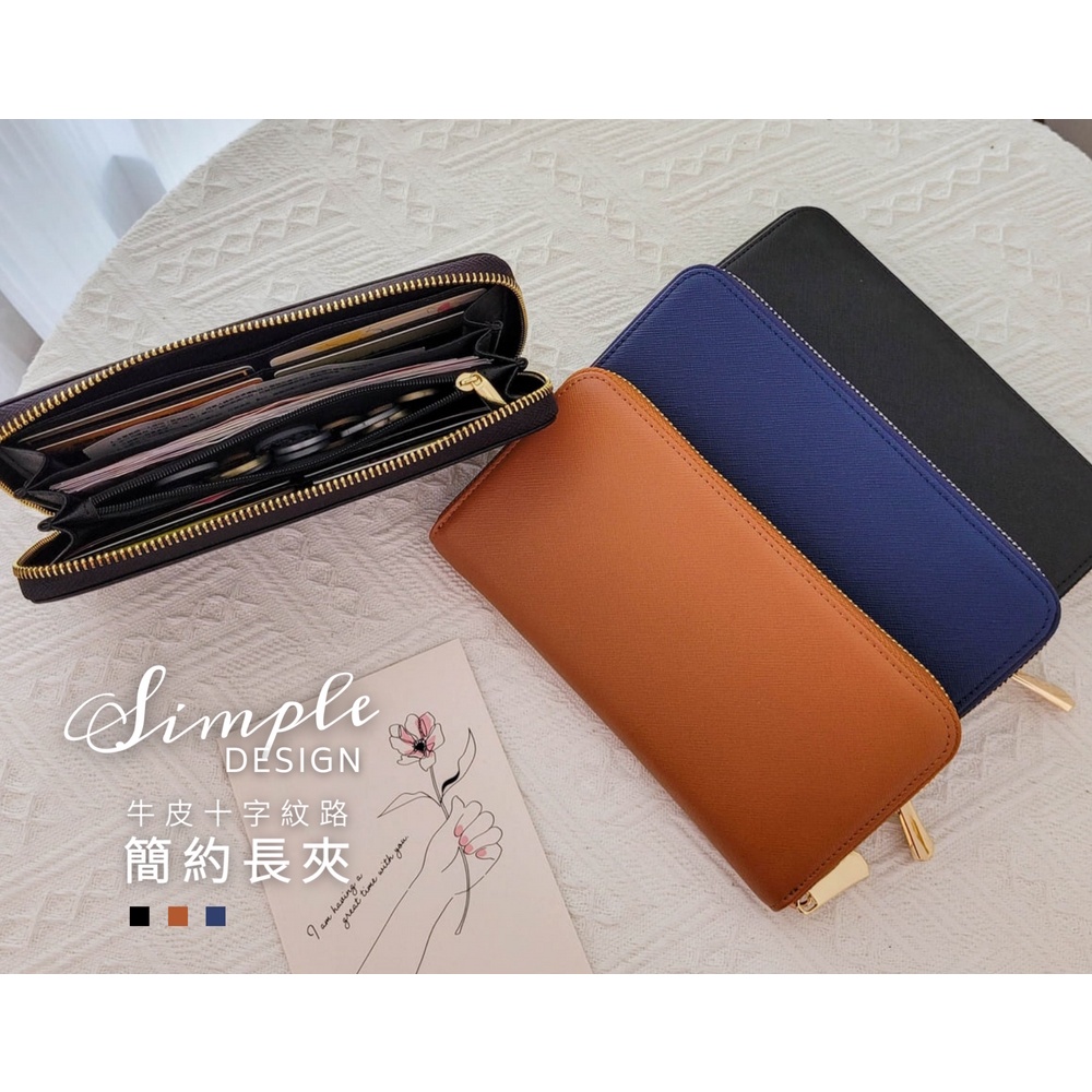 【喜番屋】十字紋牛皮女士拉鍊長夾【LH717】真皮 8卡位 皮夾 皮包 錢包 女夾