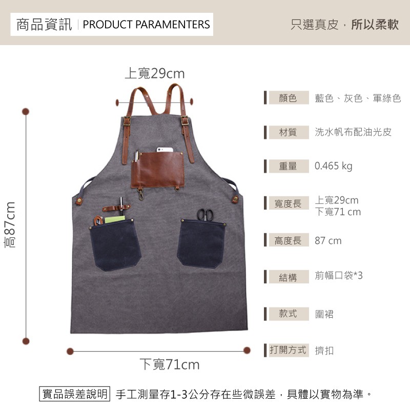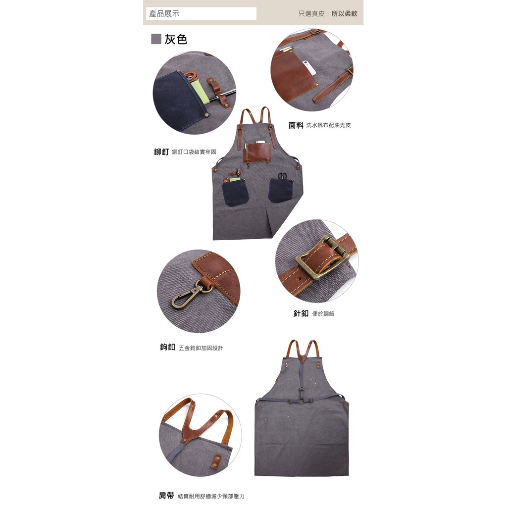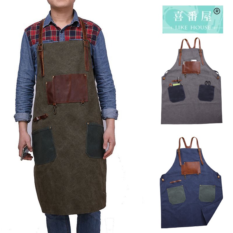 【喜番屋】水洗帆布配牛皮工作圍裙【LC01】