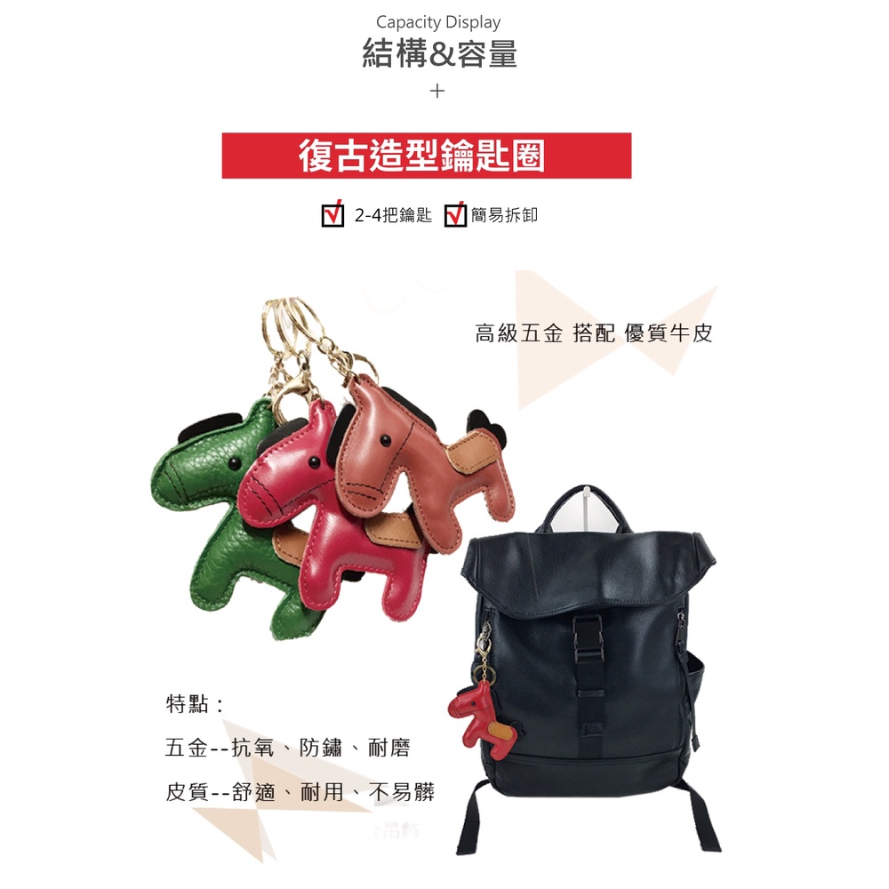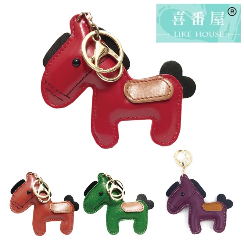 【喜番屋】頭層牛皮動物造型鑰匙圈-馬【KB90】真皮