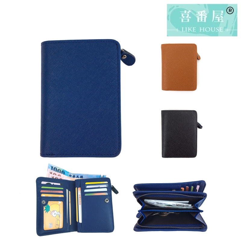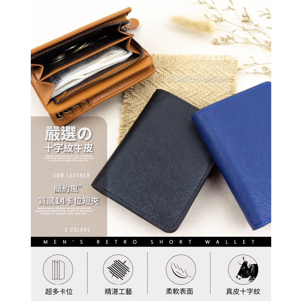【喜番屋】十字紋牛皮2折中夾【LH323】真皮 短夾 皮夾 錢包 男夾 女夾