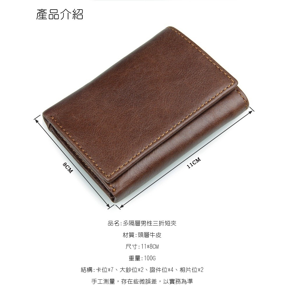 【喜番屋】頭層牛皮男士3折短夾【LH344】真皮 皮夾 錢包 男夾
