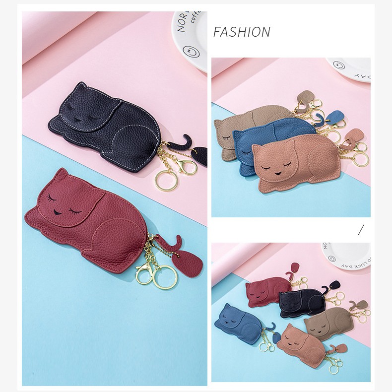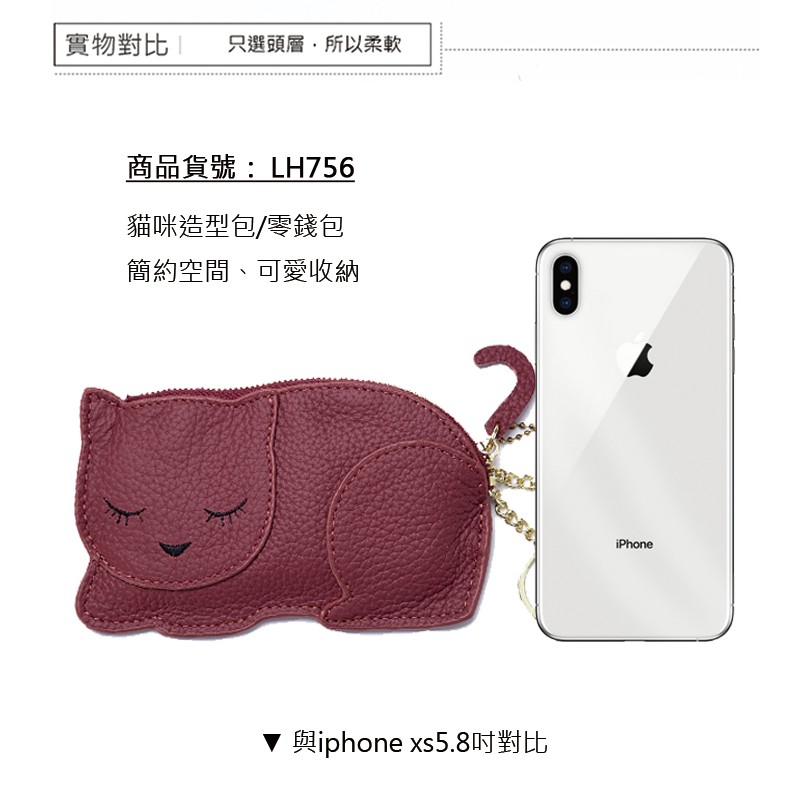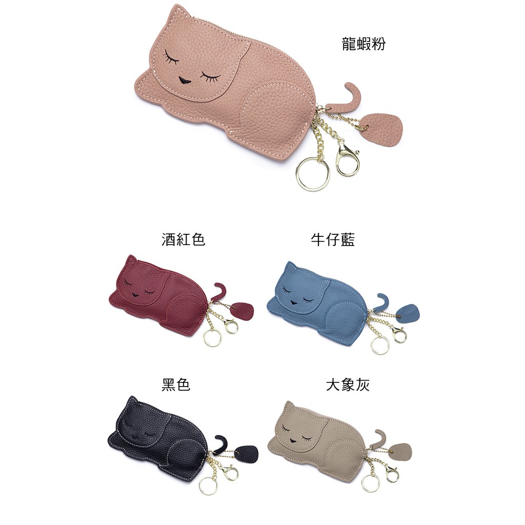 【喜番屋】頭層牛皮動物造型零錢包-貓咪【LH756】真皮 收納包 硬幣包