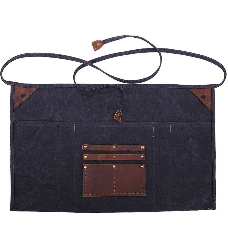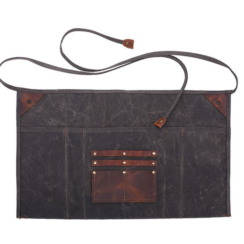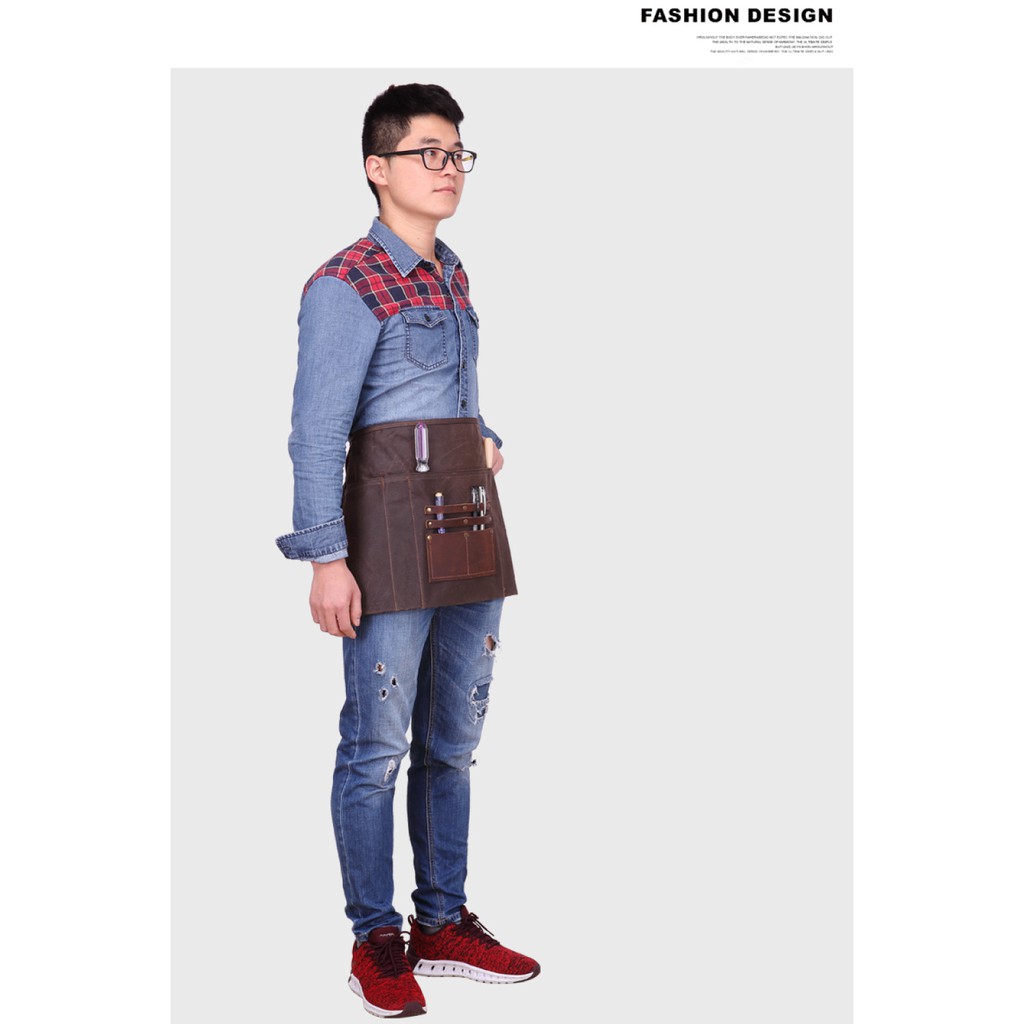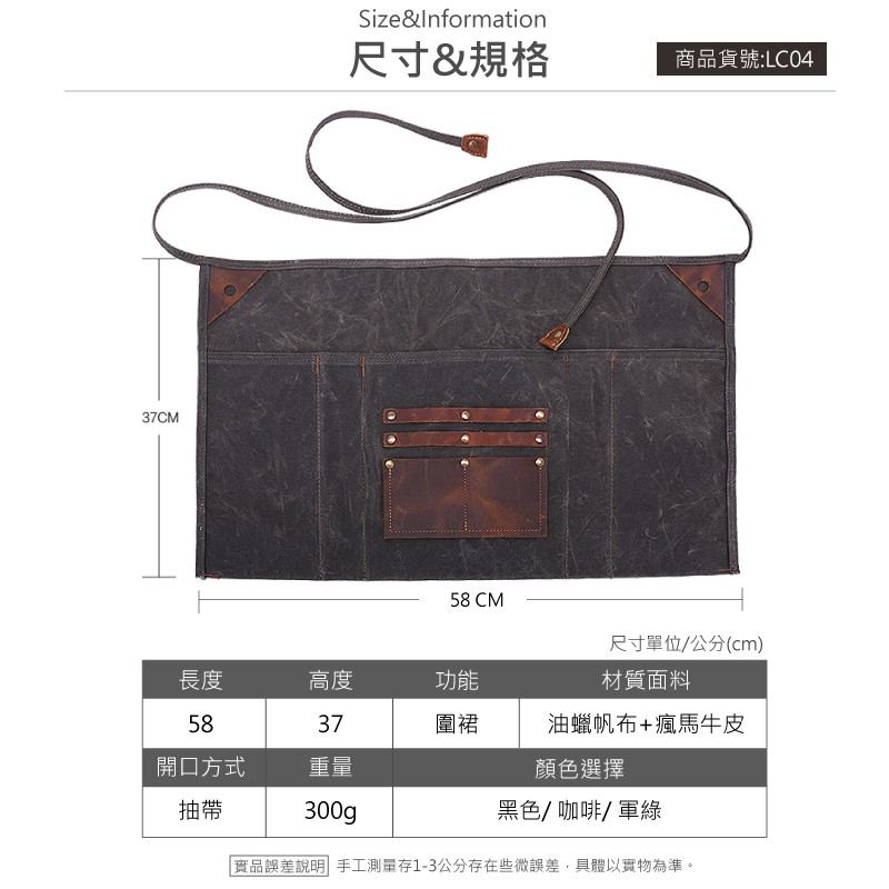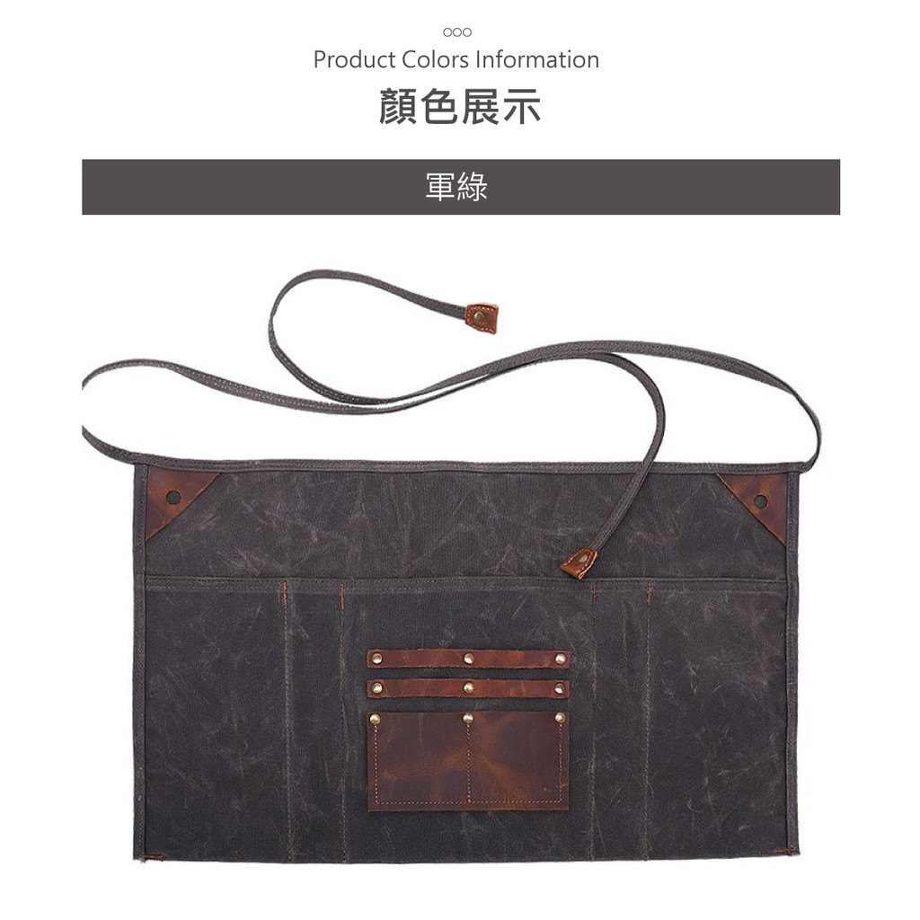 【喜番屋】油蠟帆布配瘋馬牛皮窄版工作圍裙【LC04】