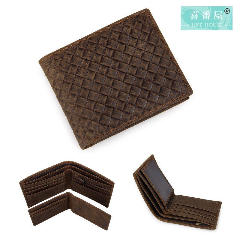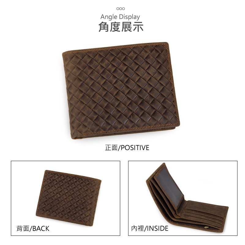 【喜番屋】頭層牛皮編織紋男士2折短夾【KN54】真皮 皮夾 皮包 男夾