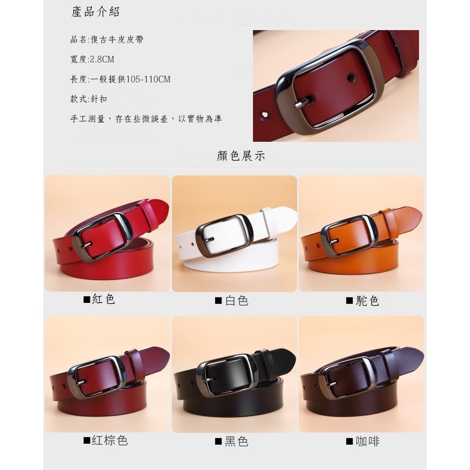 【喜番屋】牛皮針釦女士皮帶【LL32】真皮 帶寬2.8CM 腰帶 女裝配件