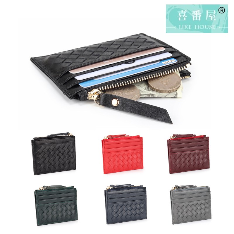 【喜番屋】真皮全羊皮手工編織輕薄零錢包卡包卡片包【KN102】
