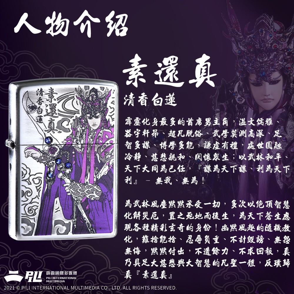 ZIPPO 素還真-天紫戰甲防風打火機 霹靂布袋戲 骨灰玩家珍藏 贈專用油 Zippo聯名 台灣獨家 CZA-2-19