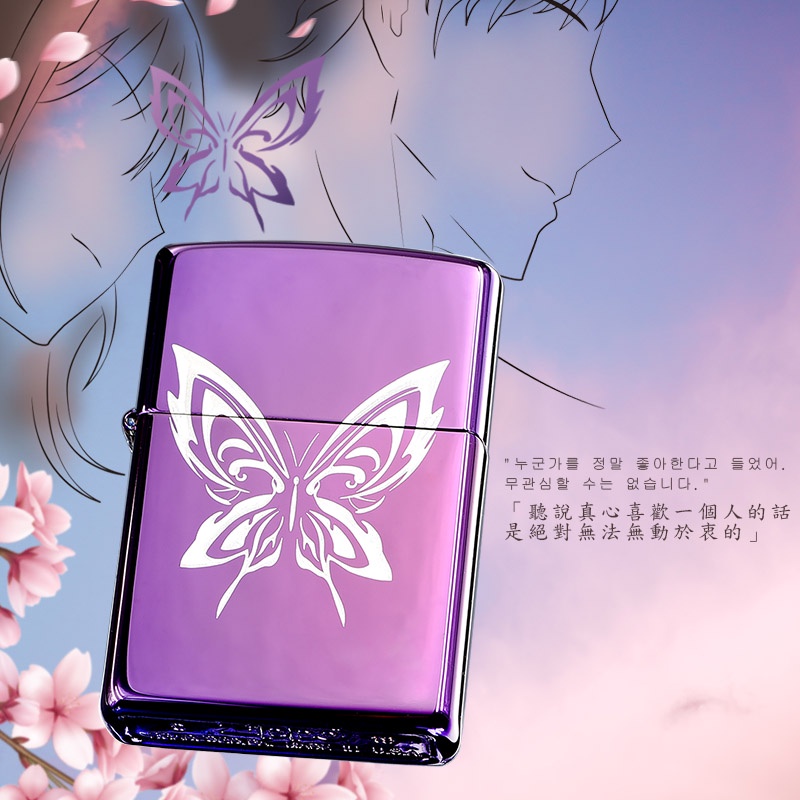 ZIPPO 無法抗拒的他 蝴蝶紋身 宋江同款 只有你我能看見的蝴蝶 紫色的蝴蝶 防風打火機 煤油打火機 24747SWD