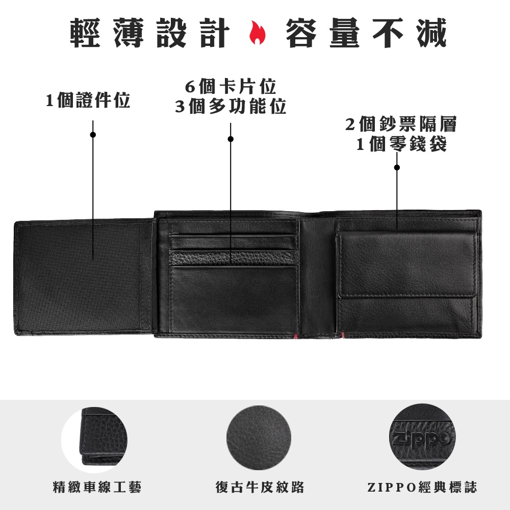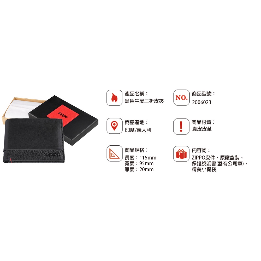 ZIPPO 黑色牛皮三折皮夾 皮件皮夾 錢包 皮包 男生皮夾 男士短夾 真皮皮夾 牛皮皮夾 2006023
